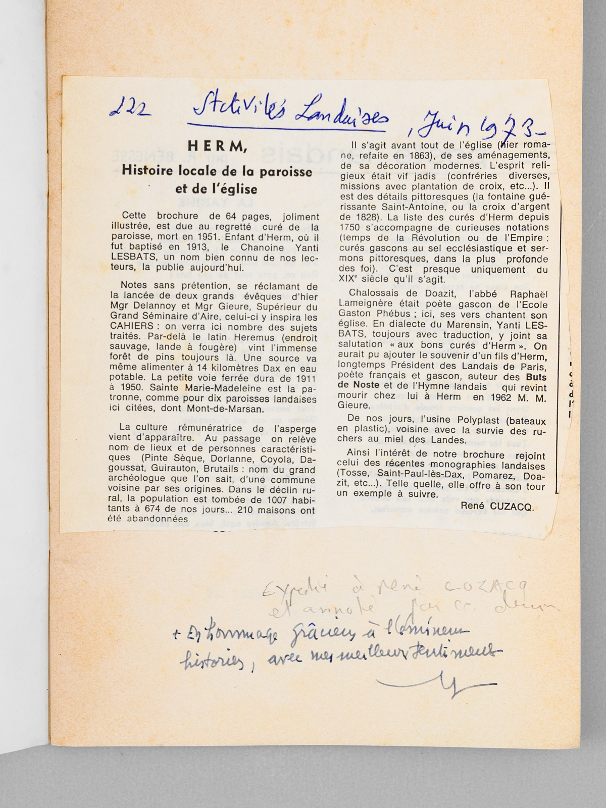 Herm. Histoire locale de la paroisse et de l'église [ Livre dédicacé par l'abbé Lesbats - Exemplaire corrigé par René Cuzacq ]photo n°2 : Herm. Histoire locale de la paroisse et de l'église [ Livre dédicacé par l'abbé Lesbats - Exemplaire corrigé par René Cuzacq ]photo n°3 : Herm. Histoire locale de la paroisse et de l'église [ Livre dédicacé par l'abbé Lesbats - Exemplaire corrigé par René Cuzacq ]photo n°4 : Herm. Histoire locale de la paroisse et de l'église [ Livre dédicacé par l'abbé Lesbats - Exemplaire corrigé par René Cuzacq ]photo n°5 : Herm. Histoire locale de la paroisse et de l'église [ Livre dédicacé par l'abbé Lesbats - Exemplaire corrigé par René Cuzacq ]photo n°6 : Herm. Histoire locale de la paroisse et de l'église [ Livre dédicacé par l'abbé Lesbats - Exemplaire corrigé par René Cuzacq ]photo n°7 : Herm. Histoire locale de la paroisse et de l'église [ Livre dédicacé par l'abbé Lesbats - Exemplaire corrigé par René Cuzacq ]photo n°8 : Herm. Histoire locale de la paroisse et de l'église [ Livre dédicacé par l'abbé Lesbats - Exemplaire corrigé par René Cuzacq ]photo n°9 : Herm. Histoire locale de la paroisse et de l'église [ Livre dédicacé par l'abbé Lesbats - Exemplaire corrigé par René Cuzacq ]