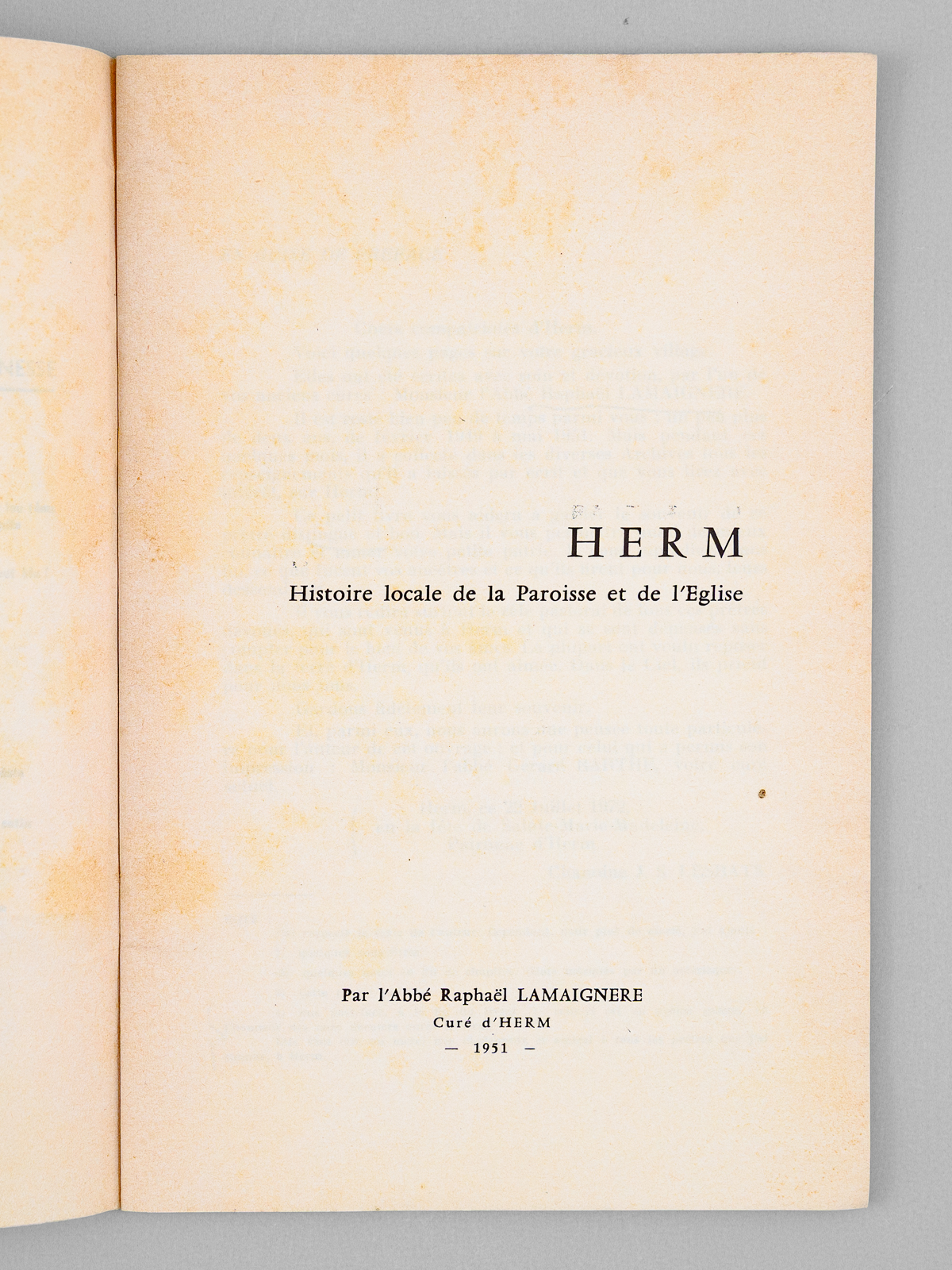 par l'abbé Raphaël Lamaignère, Curé d'Herm, 1 brochure in-8, Imprimerie Castay, Aire-sur-l'Adour, 1951 [1973 ], 63 pp.