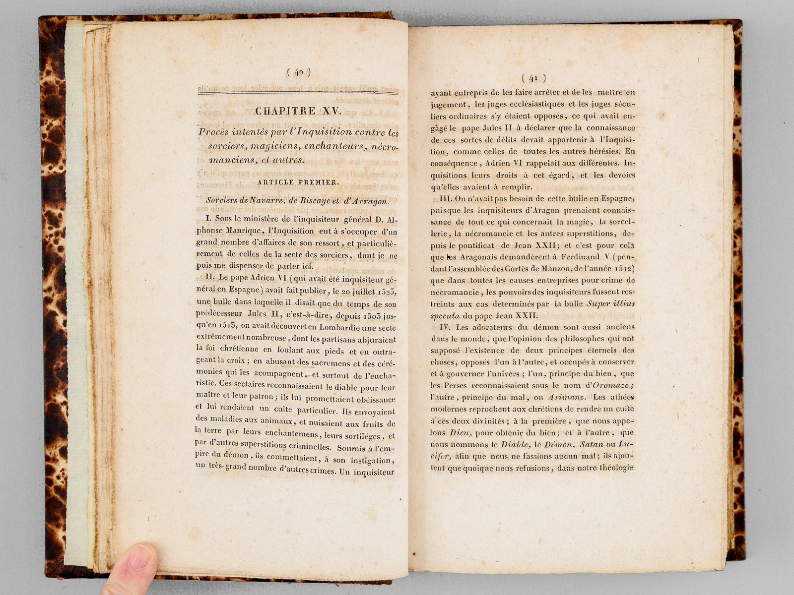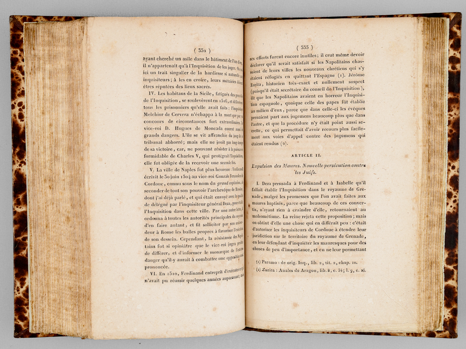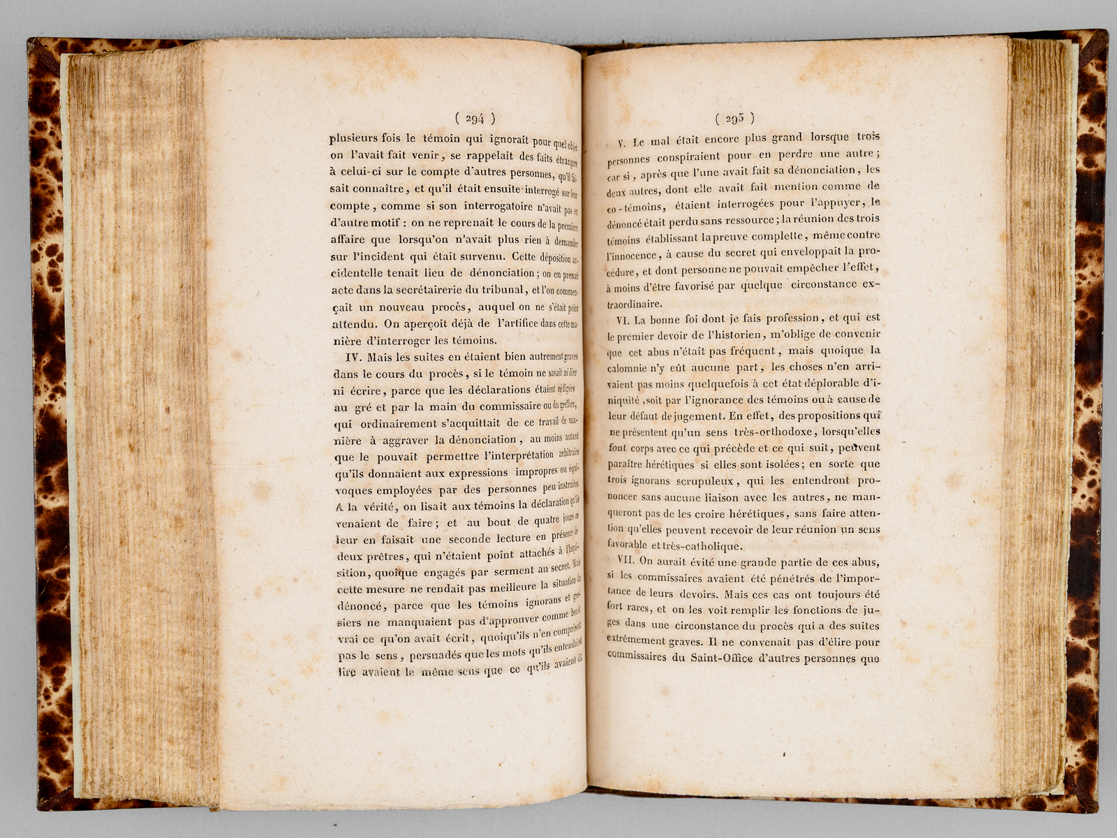 Traduite de l'espagnol sur le manuscrit et sous les yeux de l'auteur par Alexis Pellier, Seconde Édition, 4 vol. in-8 reliure demi-chagrin brun, dos à 4 nerfs, Chez Treuttel et Würtz, Paris, 1818, L-493 ; 553 ; 497 ; 500 pp. Rappel du titre complet : Histoire critique de l'Inquisition d'Espagne (4 Tomes - Complet) Depuis l'époque de son établissement par Ferdinand V jusqu'au règne de Ferdinand VII, tirée des pièces originales des archives du Conseil de la Suprême, et de celles des tribunaux subalternes du Saint-Office Commentaire : Si les historiens ont depuis très grandement réduits le nombre de victimes alors imputées à l'Inquisition espagnole par le Père Llorente, son 'histoire critique de l'Inquisition' connut une grande diffusion dans les milieux libéraux au lendemain de la Restauration, et son influence sur les esprits ne saurait être mésestimée. Bon état (dos un peu frotté avec étiquette de cote au dos du tome premier, qq. rouss.).