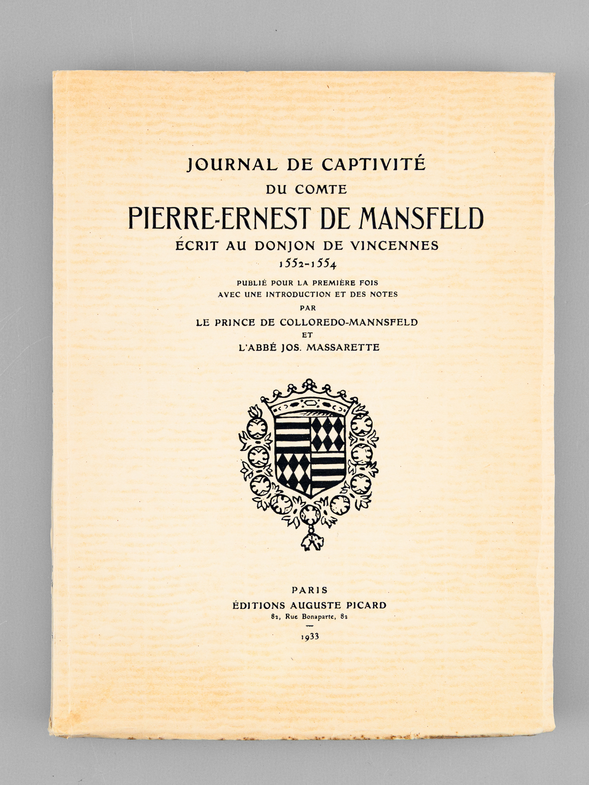 Publié pour la première fois avec une introduction et des notes par le Prince de Colloredo-Mannsfeld et l'abbé Jos. Massarette, tirage à 500 exemplaires sur papier alfa numérotés (n° 42), Editions Auguste Picard, Paris, 1933, 213 pp.
