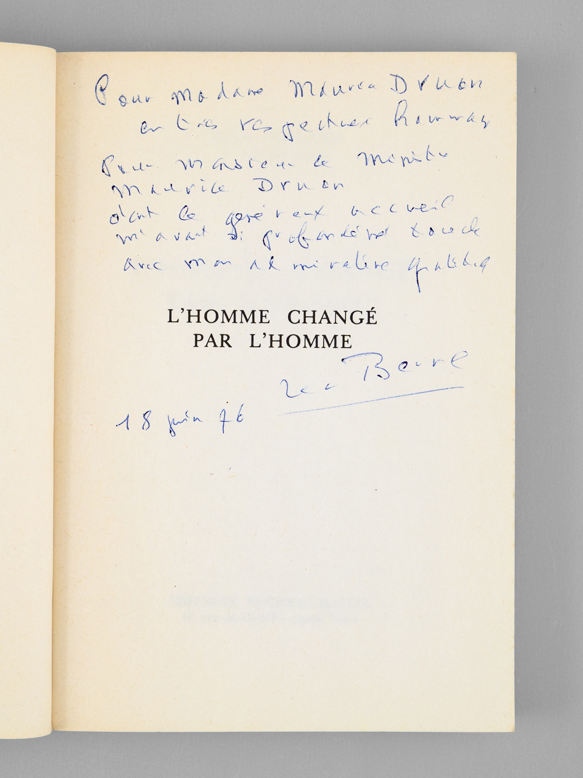 L'homme changé par l'homme [ Livre signé par l'auteur - Envoi à Maurice Druon ]