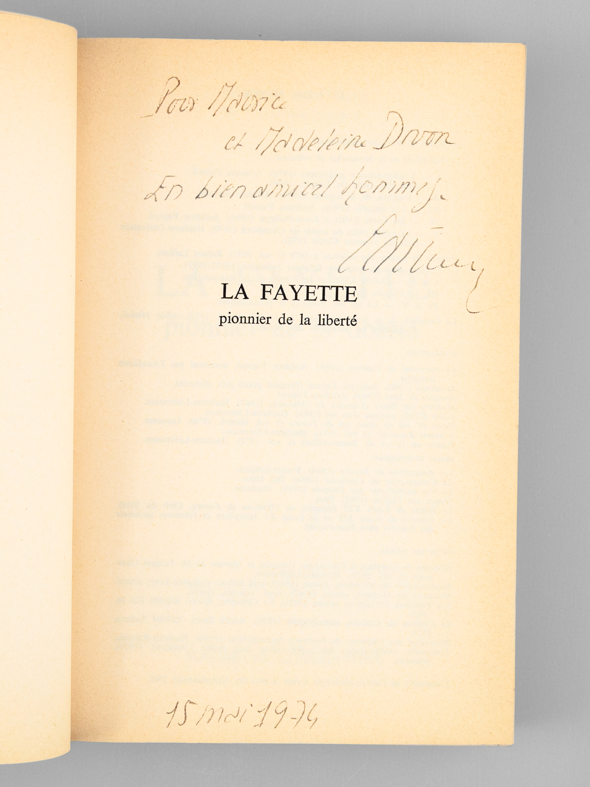 La Fayette , pionnier de la liberté [ Livre signé par l'auteur - Envoi à Maurice Druon ]