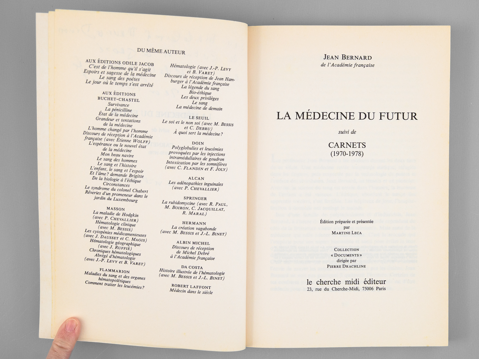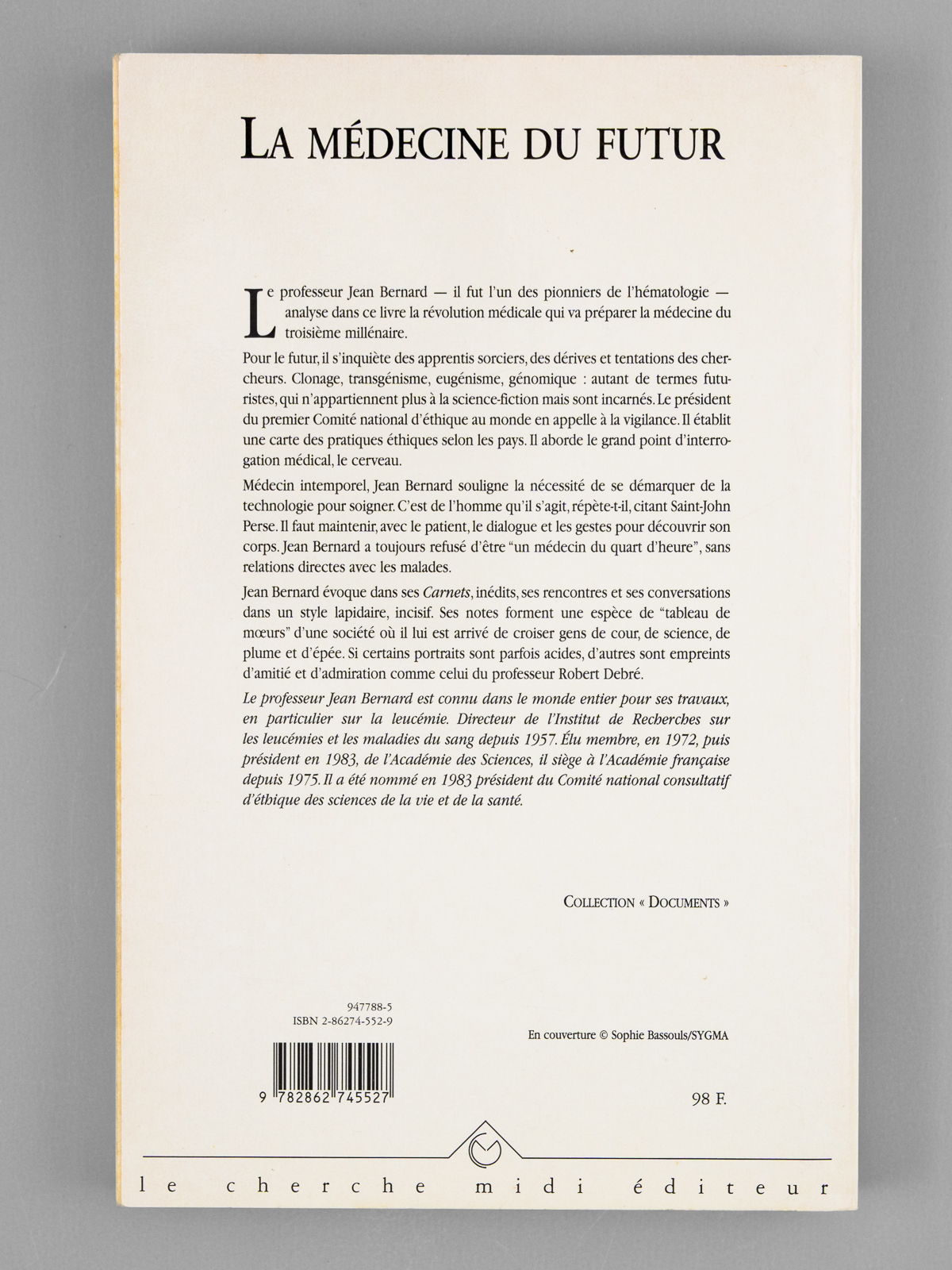 La médecine du futur , suivi de Carnets (1970-1978) [ Livre signé par l'auteur - Envoi à Maurice Druon ] - Auteur: BERNARD, Jean (1907-2006) - Année d'édition: 1998