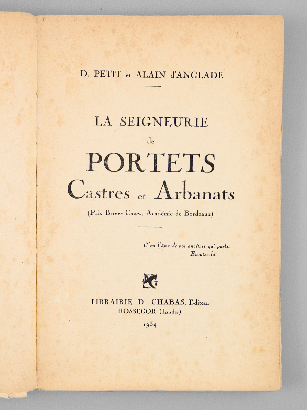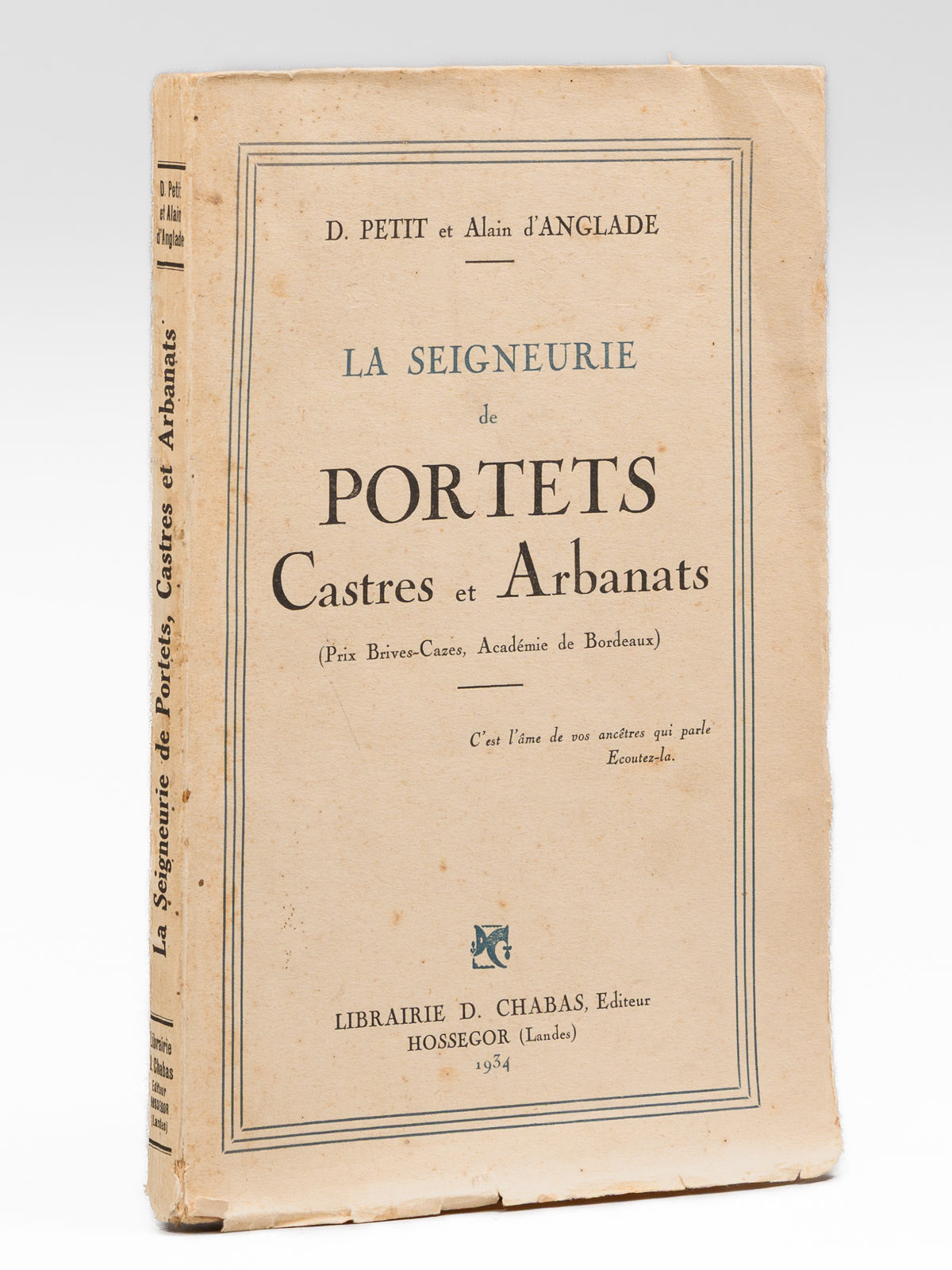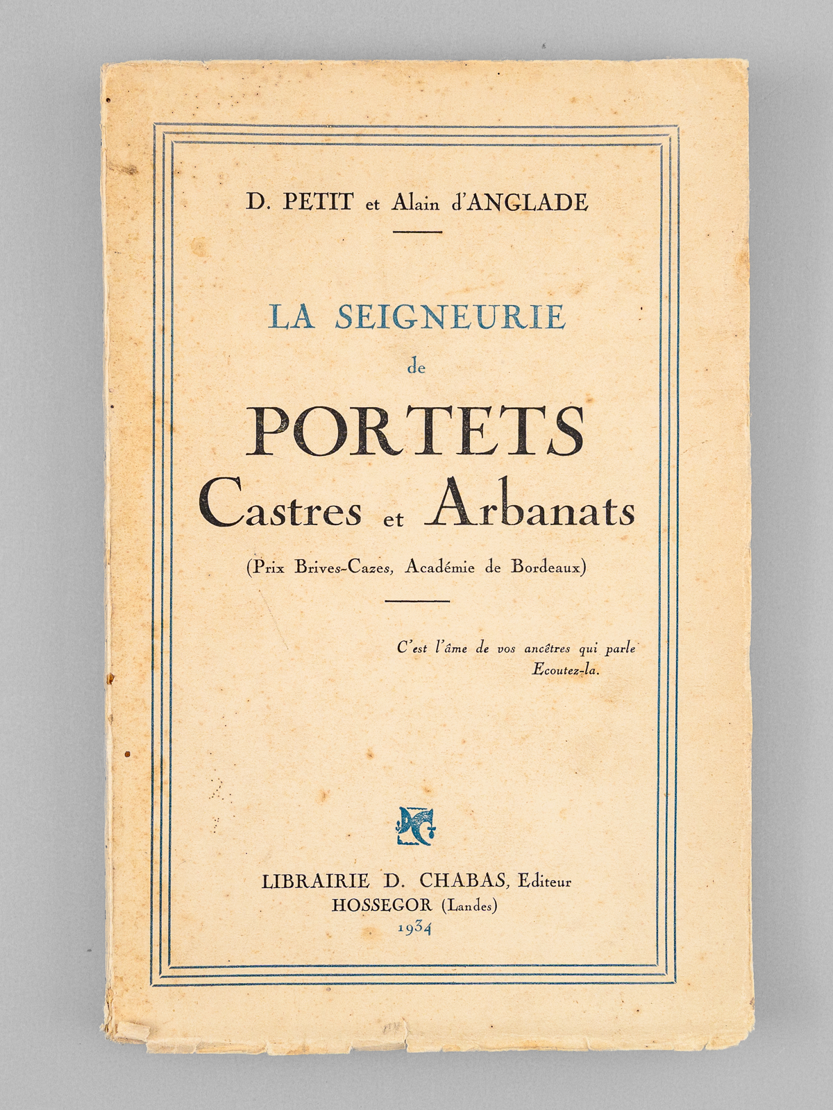 1 vol. in-8 br., Librairie D. Chabas, Hossegor, 1934, 127 pp.