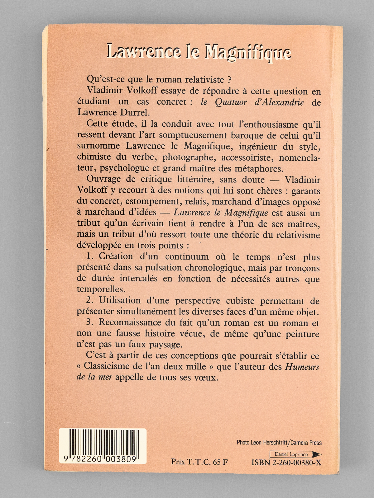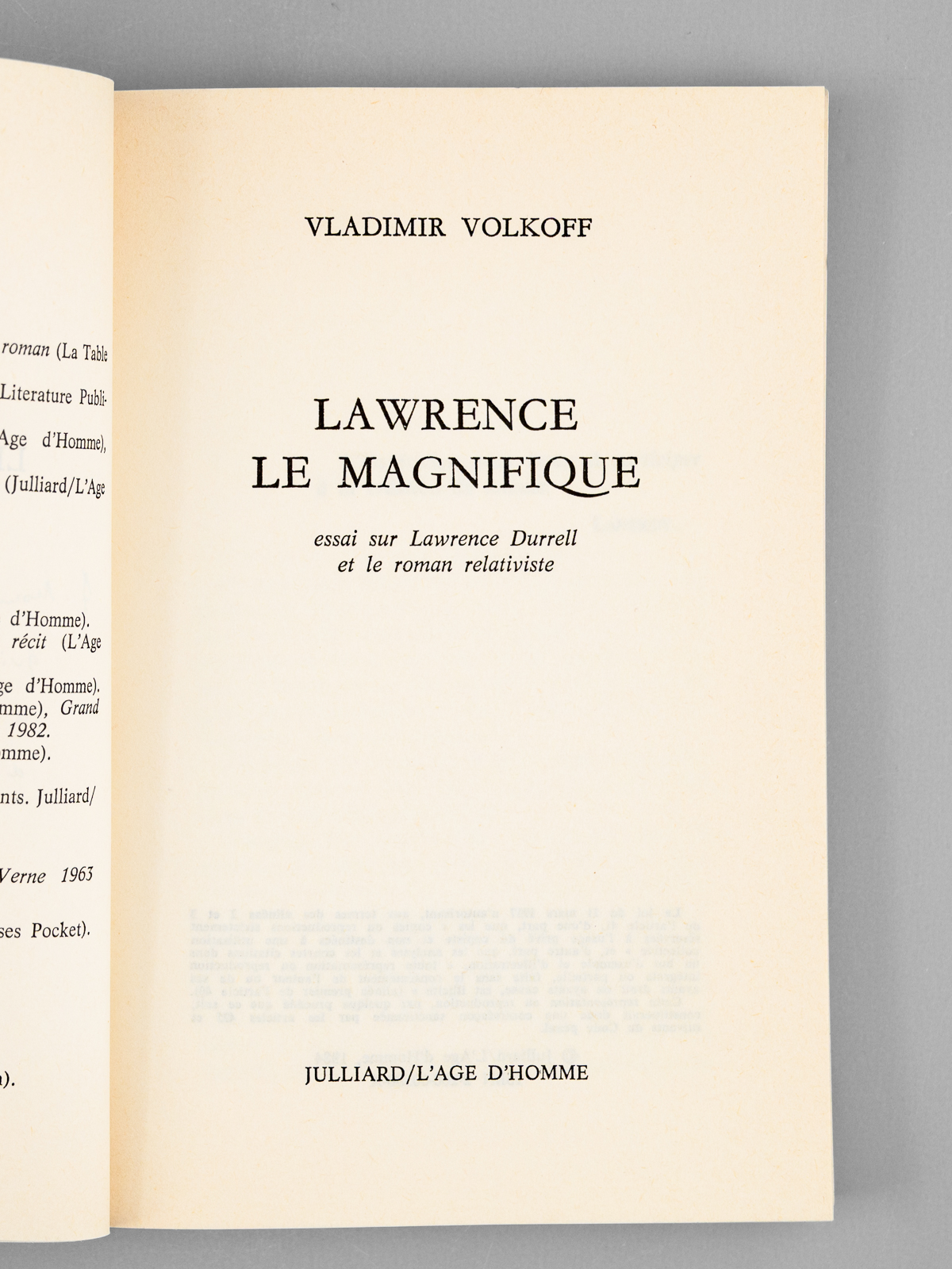 Lawrence Le Magnifique. Essai sur Lawrence Durrell et le roman relativiste [ Livre signé par l'auteur ] - Auteur: VOLKOFF, Vladimir - Année d'édition: 1984