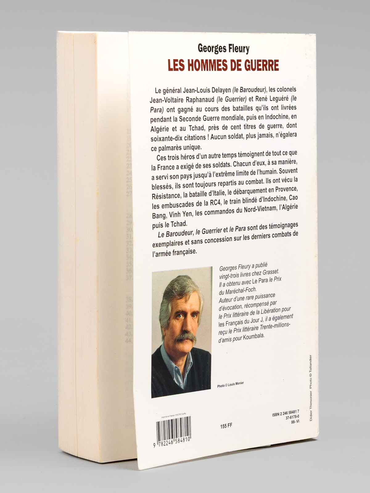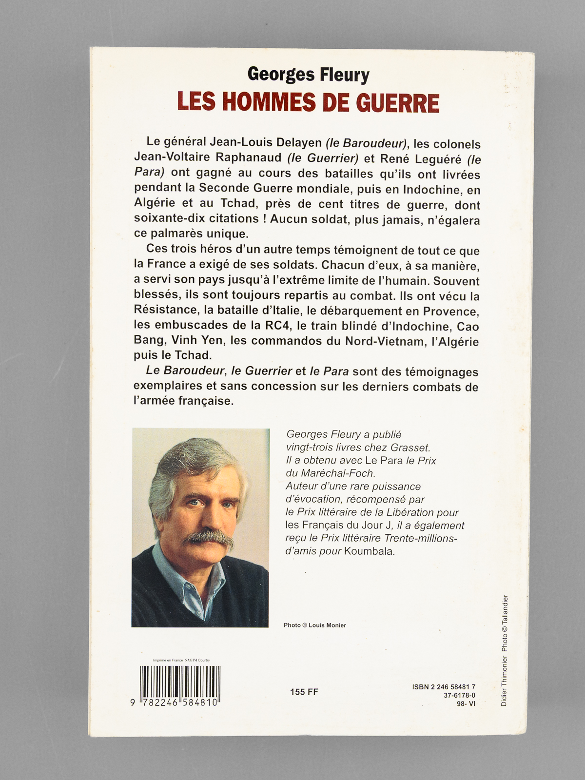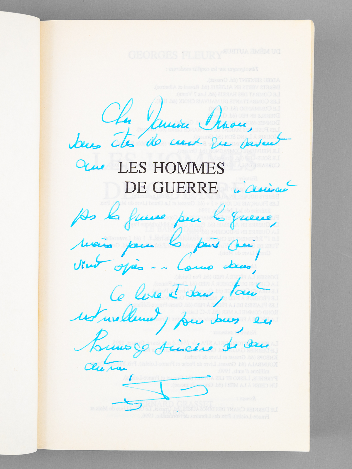 1 vol. fort in-8 br., Grasset, Paris, 1988, 826 pp. Commentaire : Superbe envoi de Georges Fleury : 'Cher Maurice Druon, vous êtes de ceux qui savent que 'Les Hommes de Guerre' n'aiment pas la guerre pour la guerre, mais pour la paix qui vient après.. Comme vous ! Ce livre est donc, tout naturellement, pour vous, en hommage sincère de [ ... ]'. Bon état pour cet exemplaire de superbe provenance pour cet ouvrage évoquant les figures du général Jean-Louis Delayen (Le Baroudeur) et des colonels Jean-Voltaire Raphanaud (Le Guerrier) et René Leguéré (Le Para) : de la bibliothèque du grand écrivain Maurice Druon, Secrétaire Perpétuel de l'Académie Française de 1985 à 1999 et immortel auteur avec son oncle Joseph Kessel du texte du 'Chant des Partisans'