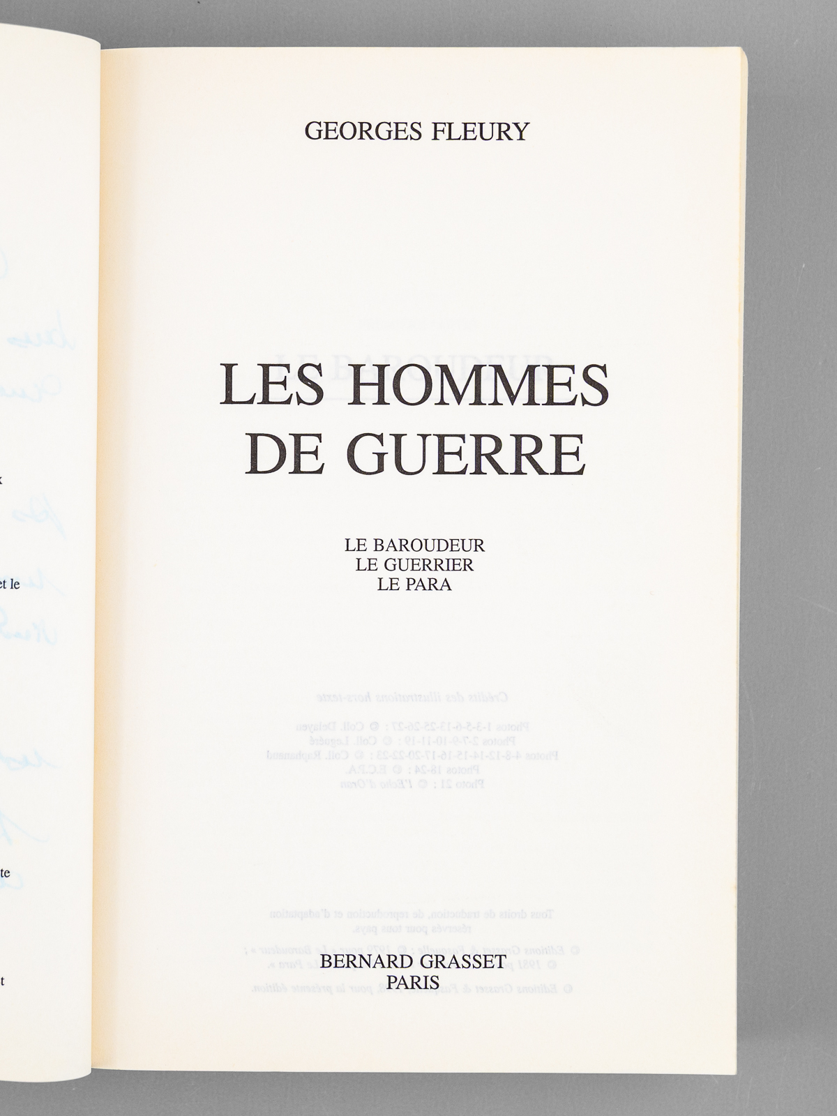 Les Hommes de Guerre. Le Baroudeur, le Guerrier, le Para [ Livre dédicacé par l'auteur à Maurice Druon ] - Auteur: FLEURY, Georges - Année d'édition: 1988