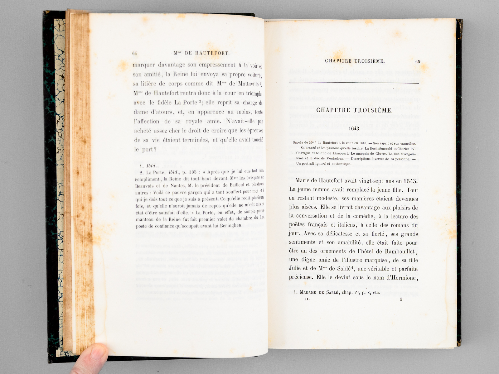 Commentaire : Etat très satisfaisant (des rousseurs, rares annot. ms., bon état par ailleurs), pour cet exemplaire truffé d'illustrations des personnages historiques évoqués). Cet exemplaire ne correspond qu'au seul volume relatif à Madame de Hautefort (Marie de Hautefort, 1616-1691).