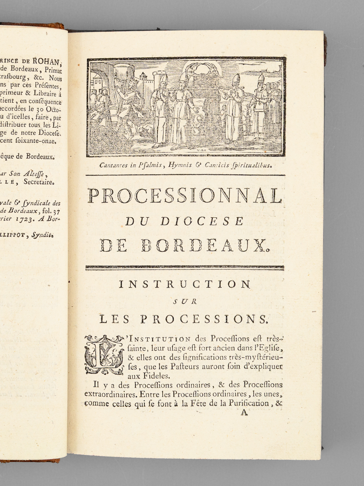 Processionnal du Diocèse de Bordeaux, Publié par l'autorité de feu Monseigneur l'Illustrissime & Révérendissime Armand Bazin de Bezons, Archevêque de Bordeaux. Et réimprimé par l'ordre de Son Altesse