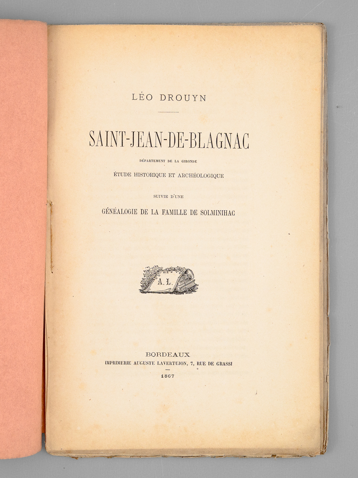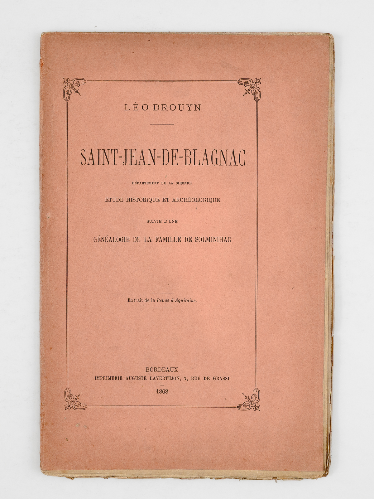 Saint-Jean-de-Blagnac Département de la Gironde. Etude historique et archéologique suivie d'une Généalogie de la Famille de Solminihac [ Edition originale ] - Auteur: DROUYN, Léo - Année d'édition: 1868