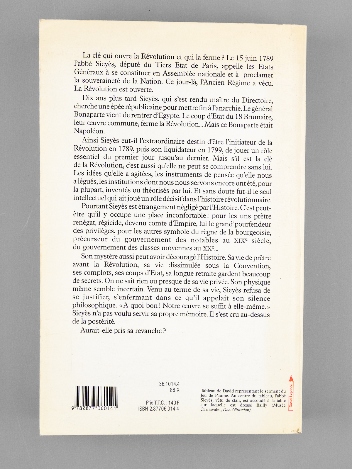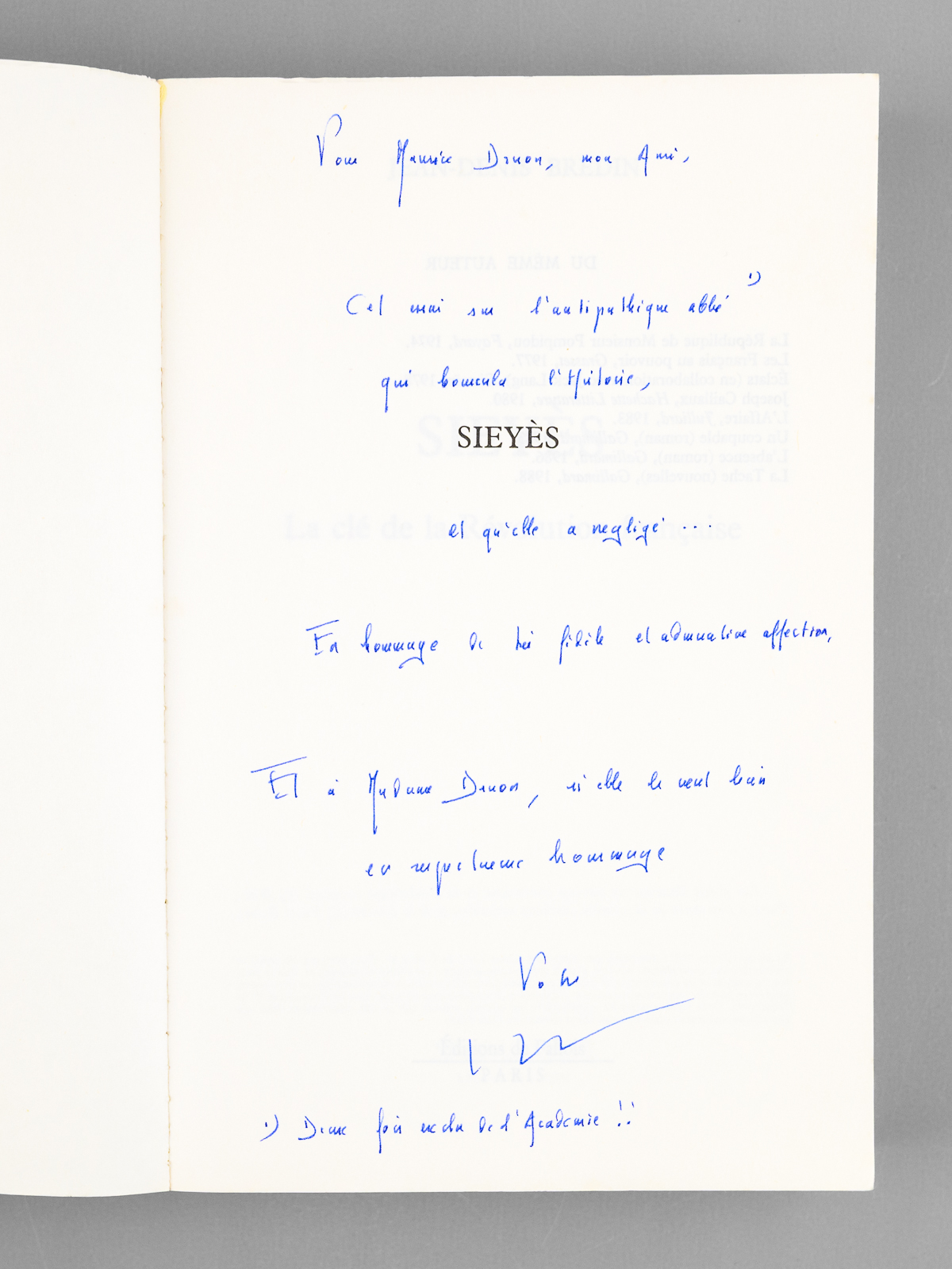 Sieyès. La clé de la Révolution française [ Livre dédicacé par l'auteur à Maurice Druon ]