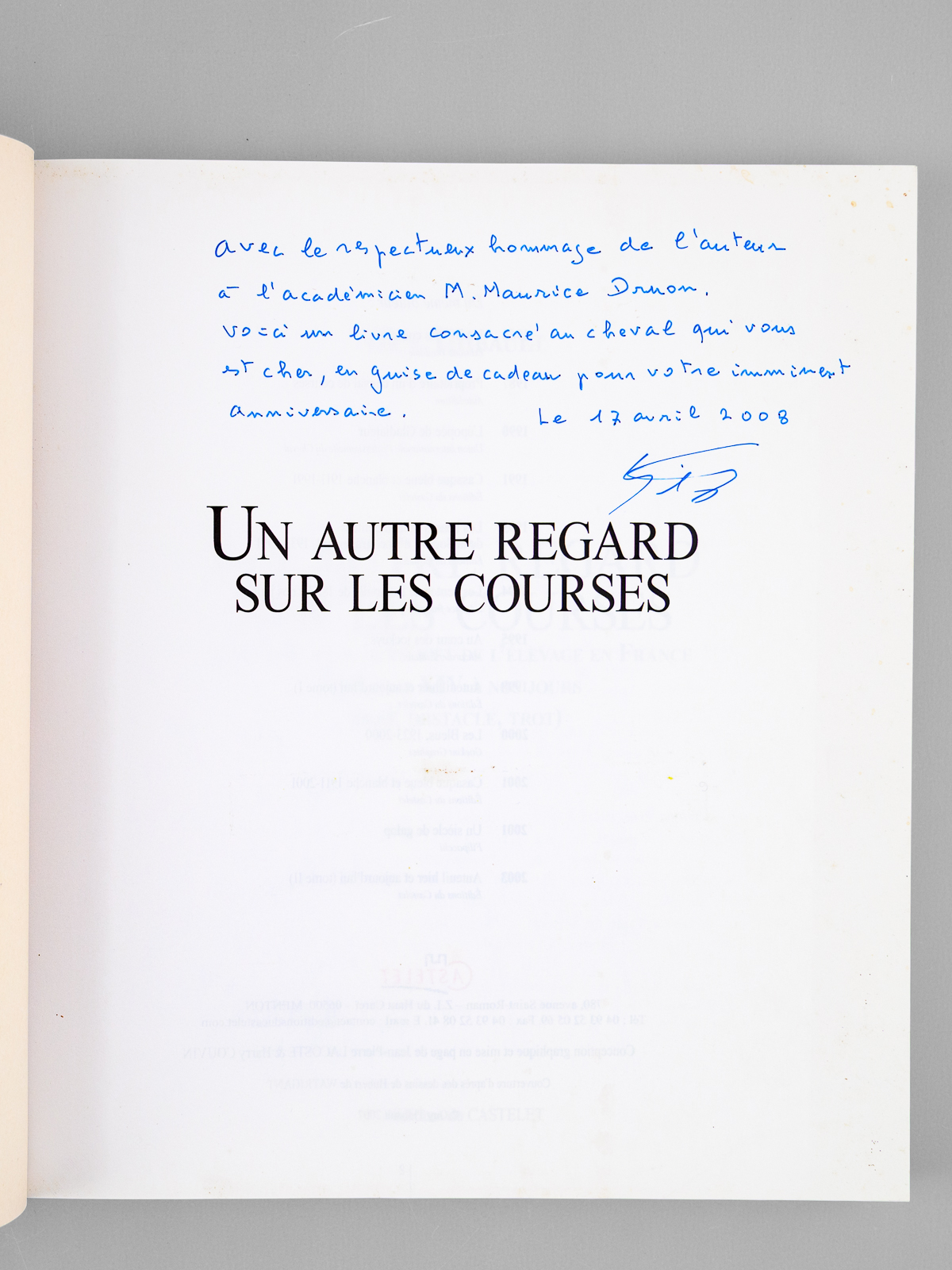 Un autre regard sur les courses. Histoire des courses et de l'élevage en France de Louis XIV à nos jours (Plat, Obstacle, Trot) [ Livre dédicacé par l'auteur à Maurice Druon ]photo n°2 : Un autre regard sur les courses. Histoire des courses et de l'élevage en France de Louis XIV à nos jours (Plat, Obstacle, Trot) [ Livre dédicacé par l'auteur à Maurice Druon ]photo n°3 : Un autre regard sur les courses. Histoire des courses et de l'élevage en France de Louis XIV à nos jours (Plat, Obstacle, Trot) [ Livre dédicacé par l'auteur à Maurice Druon ]photo n°4 : Un autre regard sur les courses. Histoire des courses et de l'élevage en France de Louis XIV à nos jours (Plat, Obstacle, Trot) [ Livre dédicacé par l'auteur à Maurice Druon ]photo n°5 : Un autre regard sur les courses. Histoire des courses et de l'élevage en France de Louis XIV à nos jours (Plat, Obstacle, Trot) [ Livre dédicacé par l'auteur à Maurice Druon ]photo n°6 : Un autre regard sur les courses. Histoire des courses et de l'élevage en France de Louis XIV à nos jours (Plat, Obstacle, Trot) [ Livre dédicacé par l'auteur à Maurice Druon ]photo n°7 : Un autre regard sur les courses. Histoire des courses et de l'élevage en France de Louis XIV à nos jours (Plat, Obstacle, Trot) [ Livre dédicacé par l'auteur à Maurice Druon ]photo n°8 : Un autre regard sur les courses. Histoire des courses et de l'élevage en France de Louis XIV à nos jours (Plat, Obstacle, Trot) [ Livre dédicacé par l'auteur à Maurice Druon ]photo n°9 : Un autre regard sur les courses. Histoire des courses et de l'élevage en France de Louis XIV à nos jours (Plat, Obstacle, Trot) [ Livre dédicacé par l'auteur à Maurice Druon ]photo n°10 : Un autre regard sur les courses. Histoire des courses et de l'élevage en France de Louis XIV à nos jours (Plat, Obstacle, Trot) [ Livre dédicacé par l'auteur à Maurice Druon ]