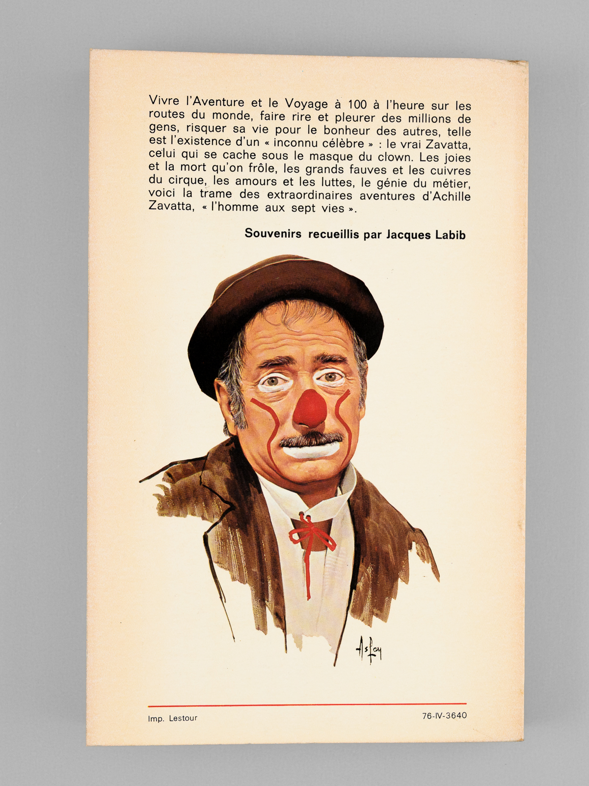 Envoi ms. de l'auteur, 1 vol. in-8 br., collection Vécu, Robert Laffont, 1976, 351 pp. Commentaire : Bon état. Envoi manuscrit de l'auteur ; 'Pour Christian Fechner, avec mon amical souvenir'. Le dédicataire, Christian Fechner (1944-2008) est surtout connu comme le producteur de nombreuses comédies du cinéma français, à partir des années 70. Il est moins connu que Christian Fechner débuta dans le music-hall, comme ventriloque prestidigitateur. Le clown Zavatta et l'ancien magicien humoriste était logiquement faits pour bien s'entendre...