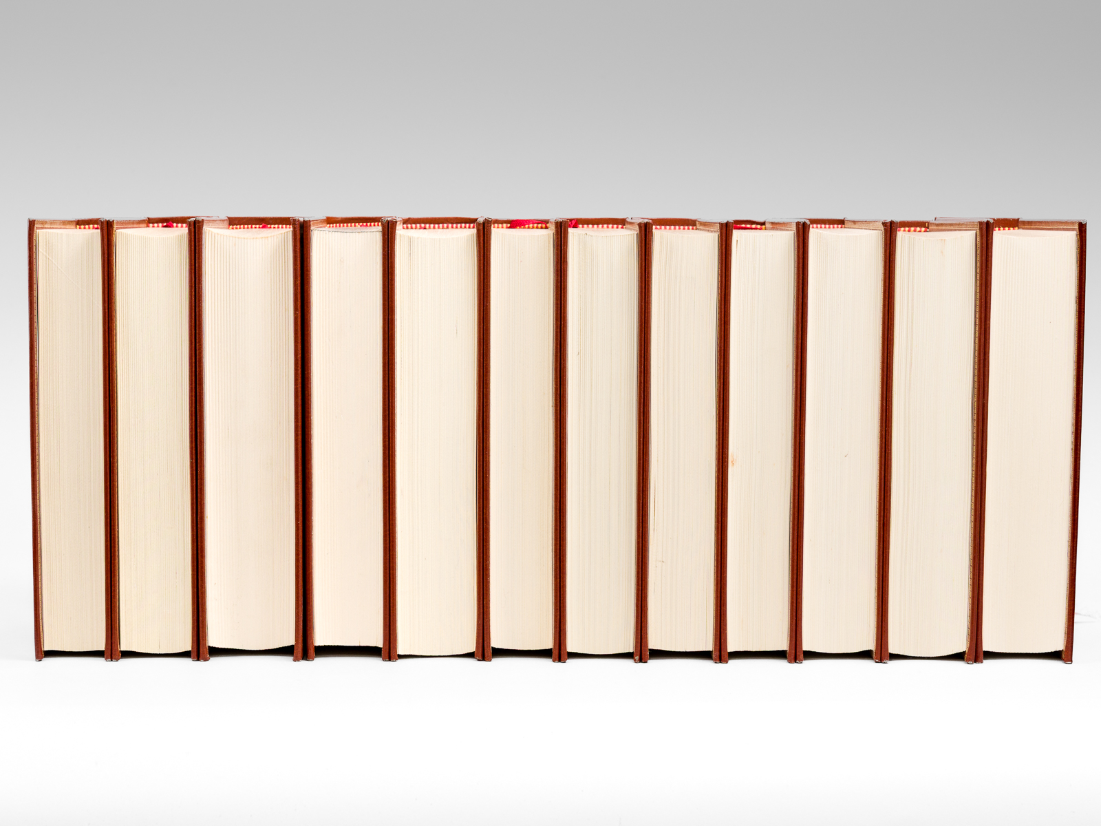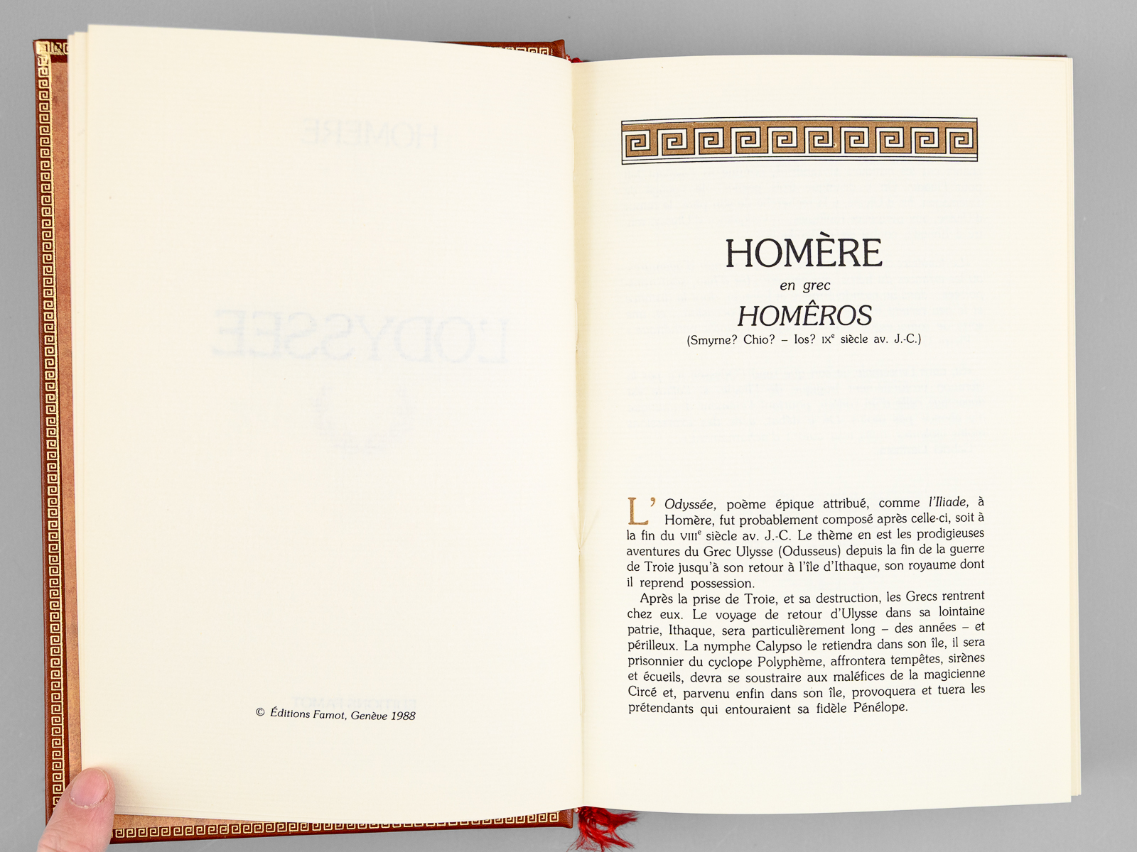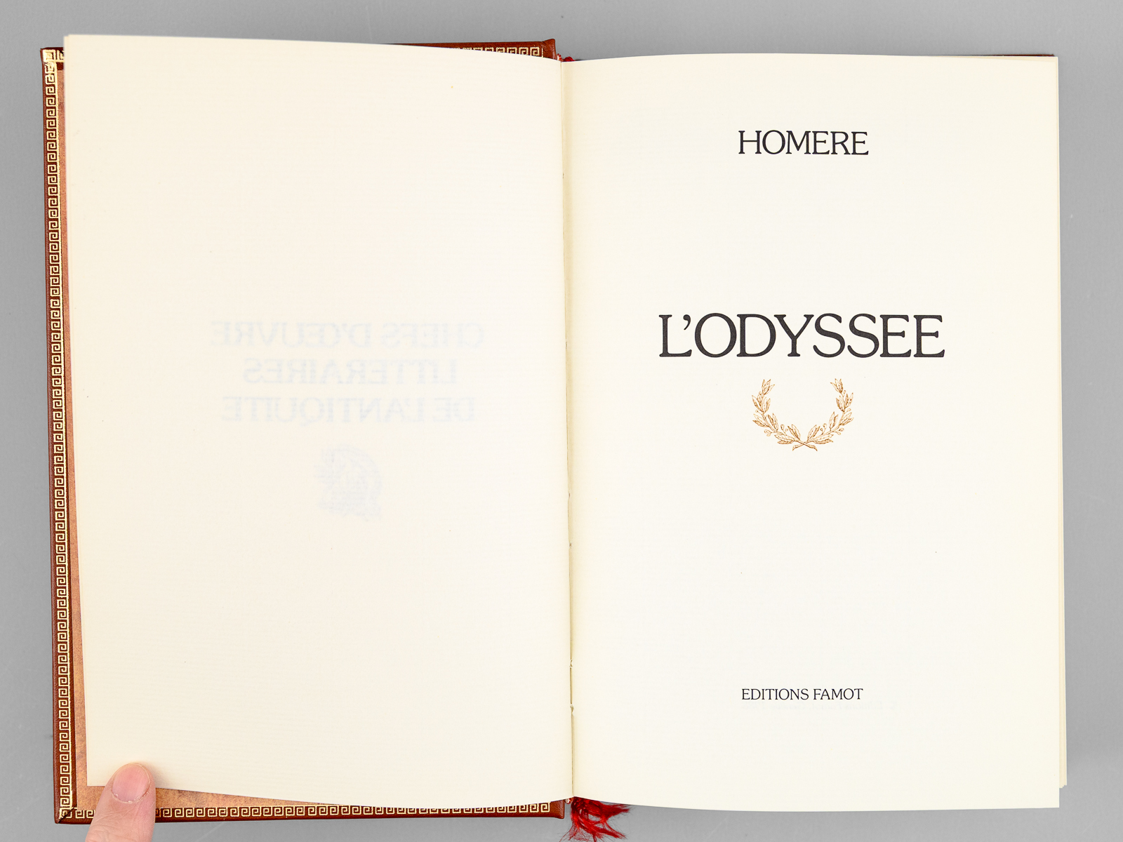 12 vol. in-8 cartonnage éditeur richement orné, Editions Famot, 1988. Liste des titres : Homère : L'Iliade ; Homère : L'Odyssée ; Hérodote : Histoires ; Platon : Oeuvres Choisies ; Eschyle, Sophocle, Euripide : Tragédies ; Thucydide : Guerre du Péloponnèse - Xénophon : Anabase ; Suétone : Vies des Douze Césars ; Salluste : Guerre de Jugurtha - Tite-Live : Deuxième Guerre Punique ; Vigrile : Oeuvres choisies - Horace : Poésies choisies - Ovide : Art d'Aimer ; César : Guerre des Gaules - Cicéron : Catilinaires - Marc-Aurèle : Pensées ; Pétrone : Satiricon - Plutarque : Vies des Hommes illustres - Tacite : Annales