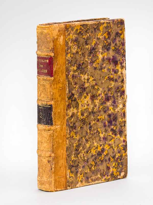 1 vol. in-12 reliure XIXe demi-basane marron, dos à 5 nerfs, Chez Pierre Auboüin et Pierre Emery, Paris, 1686, 3 ff. (titre et tables), pp. 361-732, 9 ff. n. ch. Titre : De l'Utilité des Voyages et de l'Avantage que la Recherche des Antiquitez [ Antiquités ] procure aux Sçavans [ Savants ]. Commentaire : Edition originale du tome second, seul. L'ouvrage comprend de nombreuses gravures dans le texte. Etat satisfaisant (tome 2 seul, reliure frottée, petit manque angulaire au feuillet d'errate, bon état par ailleurs). Prix en l'état. Caillet, 839 : 'Intéressant ouvrage sur les médailles, les statues, les dieux Lares, les pierres gravées, les talismans, les antiques de tout genre, les manuscrits, et contenant à la fin une liste des cabinets et bibliothèques des plus célèbres amateurs de tous les pays'.