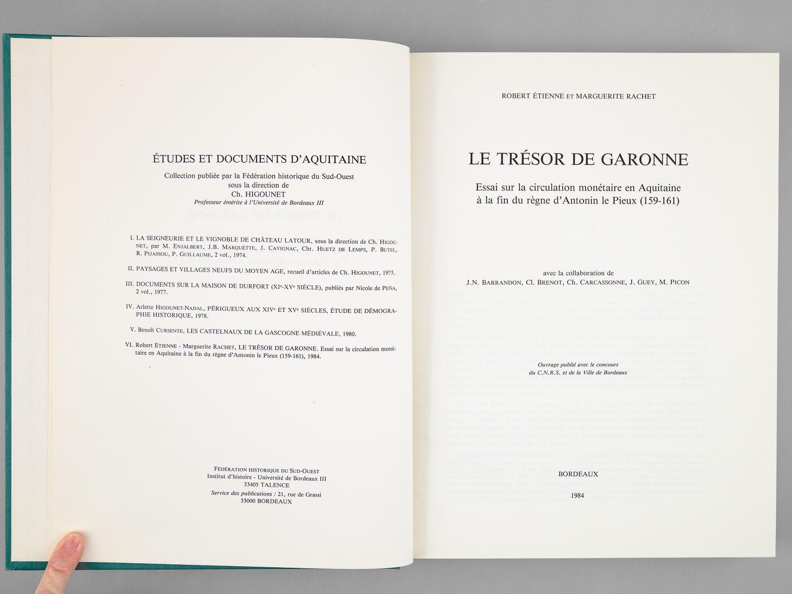 Le Trésor de Garonne. Essai sur la circulation monétaire en Aquitaine à la fin du règne d'Antonin le Pieux (159-161)photo n°2 : Le Trésor de Garonne. Essai sur la circulation monétaire en Aquitaine à la fin du règne d'Antonin le Pieux (159-161)photo n°3 : Le Trésor de Garonne. Essai sur la circulation monétaire en Aquitaine à la fin du règne d'Antonin le Pieux (159-161)photo n°4 : Le Trésor de Garonne. Essai sur la circulation monétaire en Aquitaine à la fin du règne d'Antonin le Pieux (159-161)photo n°5 : Le Trésor de Garonne. Essai sur la circulation monétaire en Aquitaine à la fin du règne d'Antonin le Pieux (159-161)photo n°6 : Le Trésor de Garonne. Essai sur la circulation monétaire en Aquitaine à la fin du règne d'Antonin le Pieux (159-161)photo n°7 : Le Trésor de Garonne. Essai sur la circulation monétaire en Aquitaine à la fin du règne d'Antonin le Pieux (159-161)photo n°8 : Le Trésor de Garonne. Essai sur la circulation monétaire en Aquitaine à la fin du règne d'Antonin le Pieux (159-161)photo n°9 : Le Trésor de Garonne. Essai sur la circulation monétaire en Aquitaine à la fin du règne d'Antonin le Pieux (159-161)photo n°10 : Le Trésor de Garonne. Essai sur la circulation monétaire en Aquitaine à la fin du règne d'Antonin le Pieux (159-161)photo n°11 : Le Trésor de Garonne. Essai sur la circulation monétaire en Aquitaine à la fin du règne d'Antonin le Pieux (159-161)photo n°12 : Le Trésor de Garonne. Essai sur la circulation monétaire en Aquitaine à la fin du règne d'Antonin le Pieux (159-161)