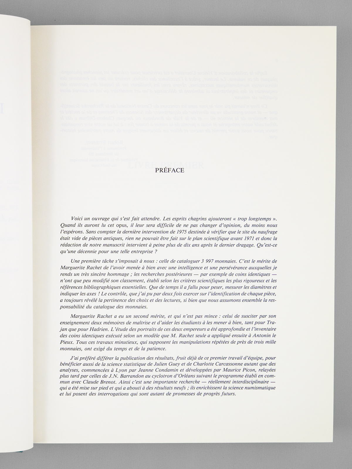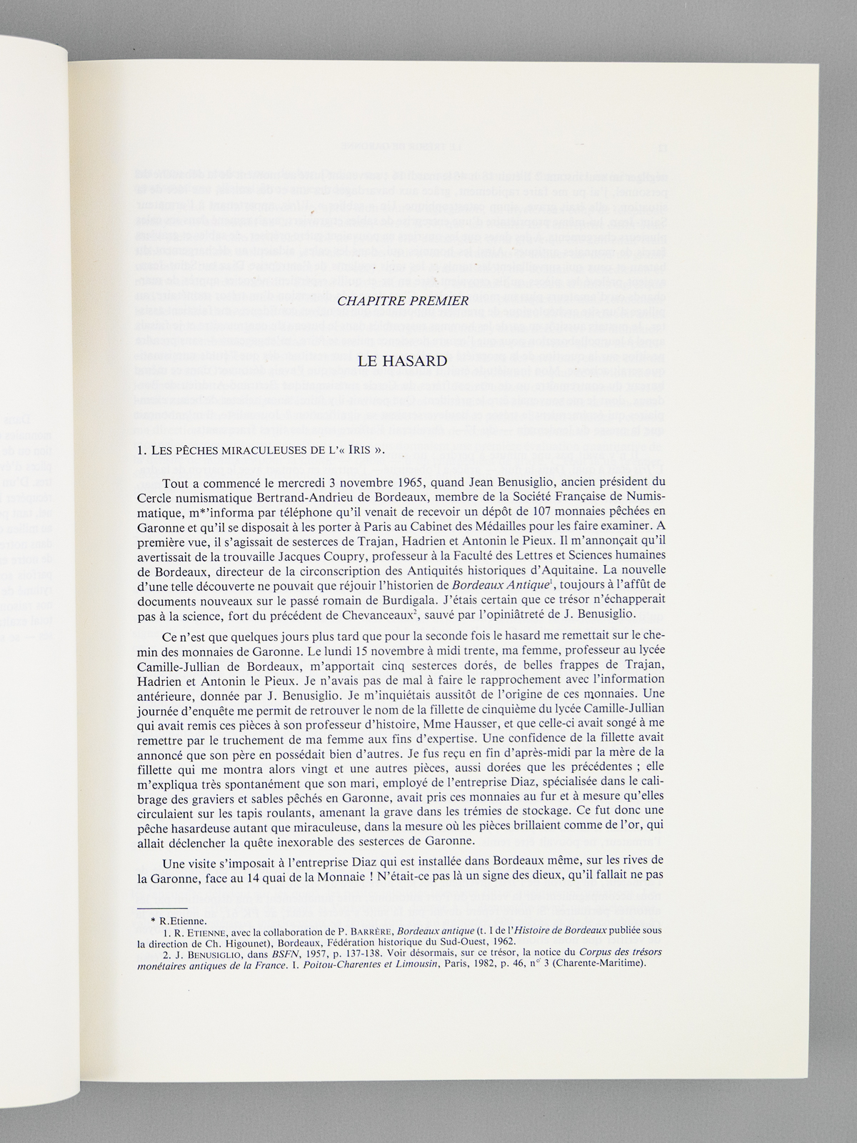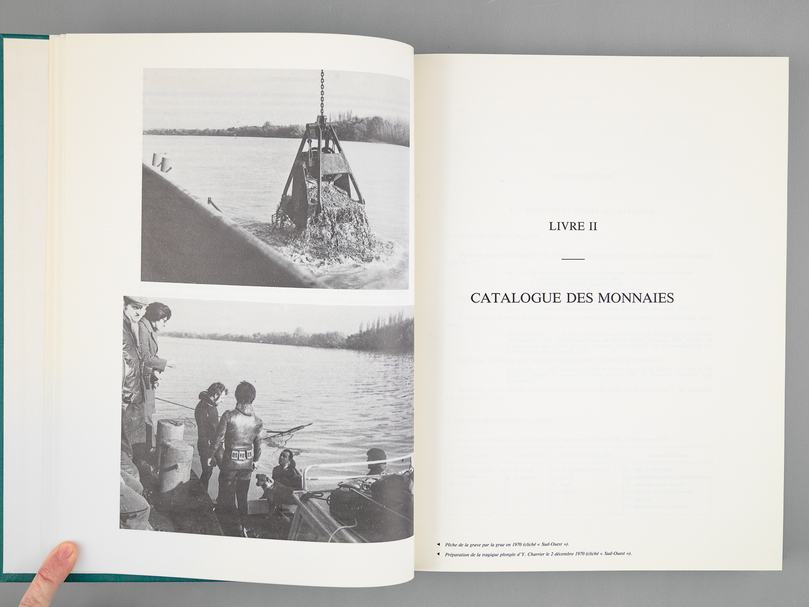 Commentaire : Belle étude scientifique de 3997 monnaies antiques trouvées en 1965 dans la Garonn, trésor d'un commerçant dont le bateau a coulé après avoir pris feu, en amont de Bordeaux, devant Quinsac. Bon état (sans la jaquette, très bon état par ailleurs)