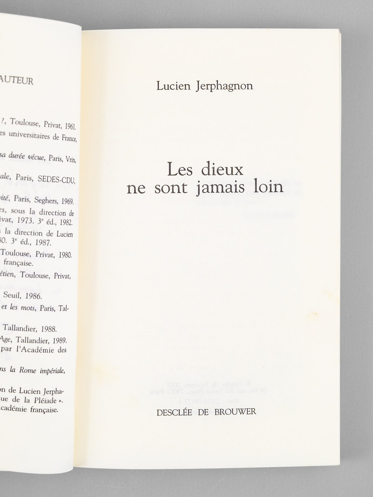 Envoi ms. de l'auteur, 1 vol. in-8 br. sous jaquette illustrée, Desclée de Brouwer, Paris, 2002, 223 pp.