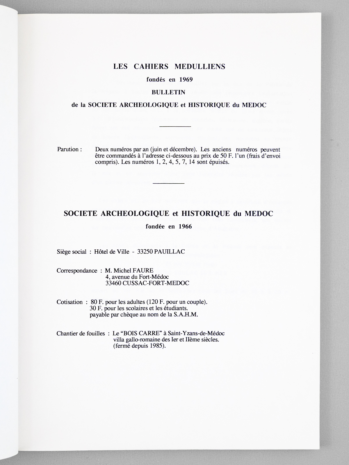 - Auteur: Les Cahiers Médulliens (revue) ; MOREAU, Jacques ; Société Archéologique du Médoc