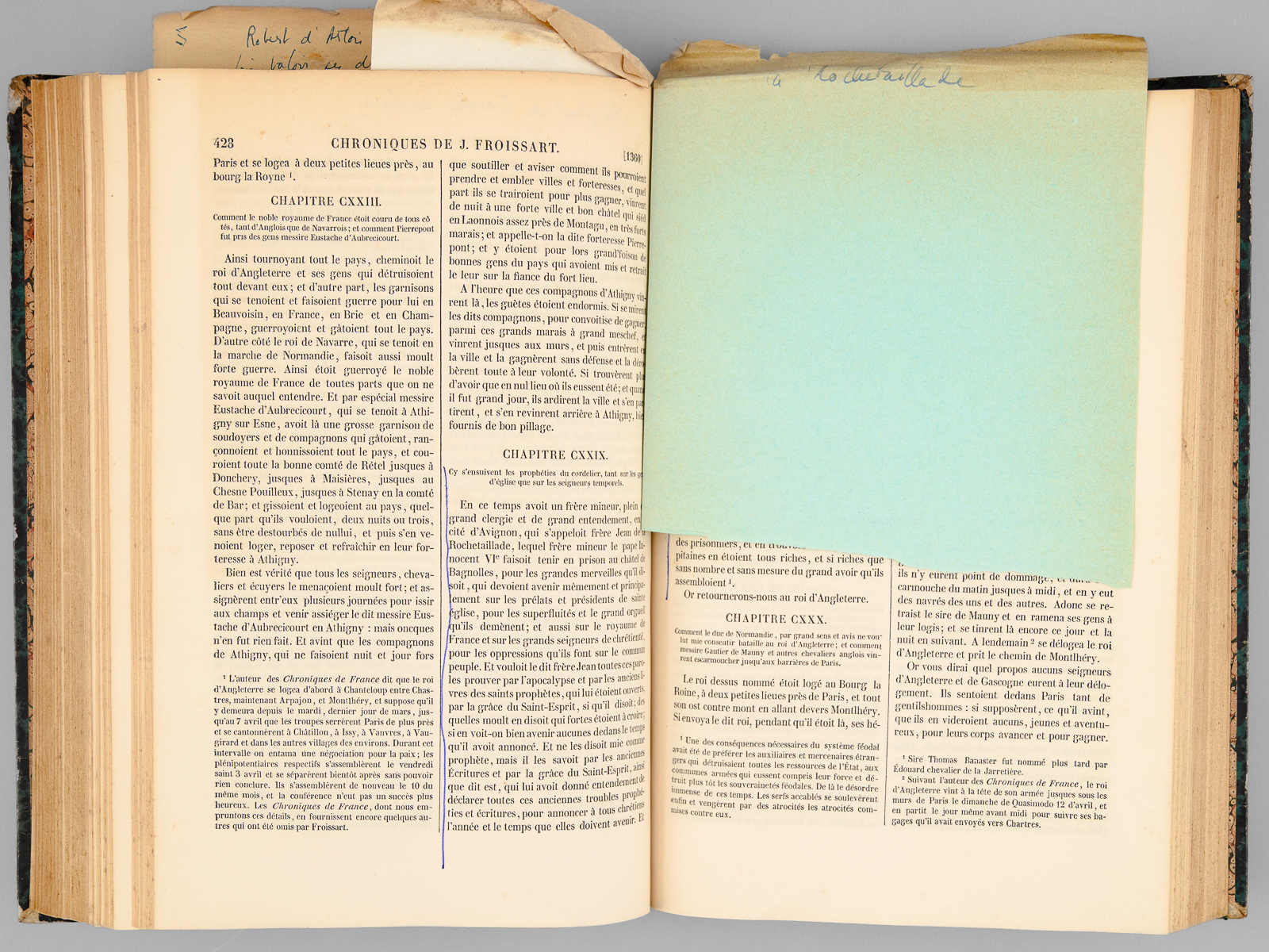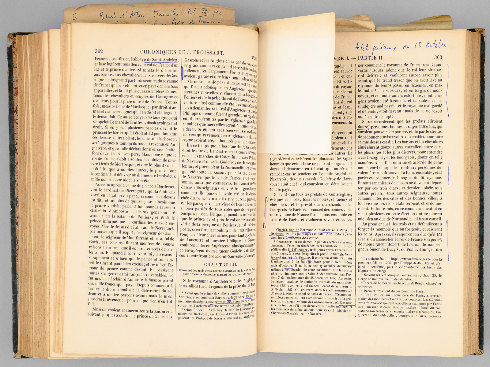 Les Chroniques de Sire Jean Froissart (3 Tomes - Complet) [ Exemplaire de travail annoté par Maurice Druon pour la rédaction des 'Rois Maudits' ] Qui traitent des Merveilleuses Emprises, Nobles Aventures et Faits d'armes advenus en son Temps