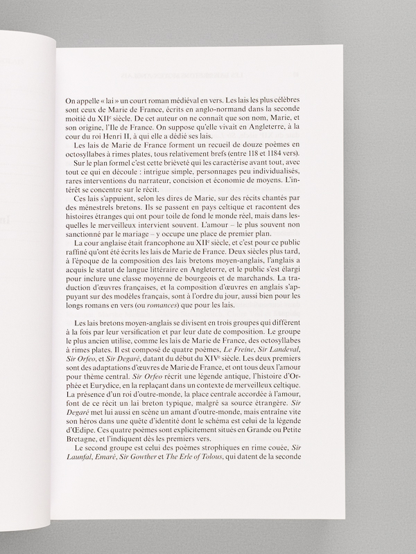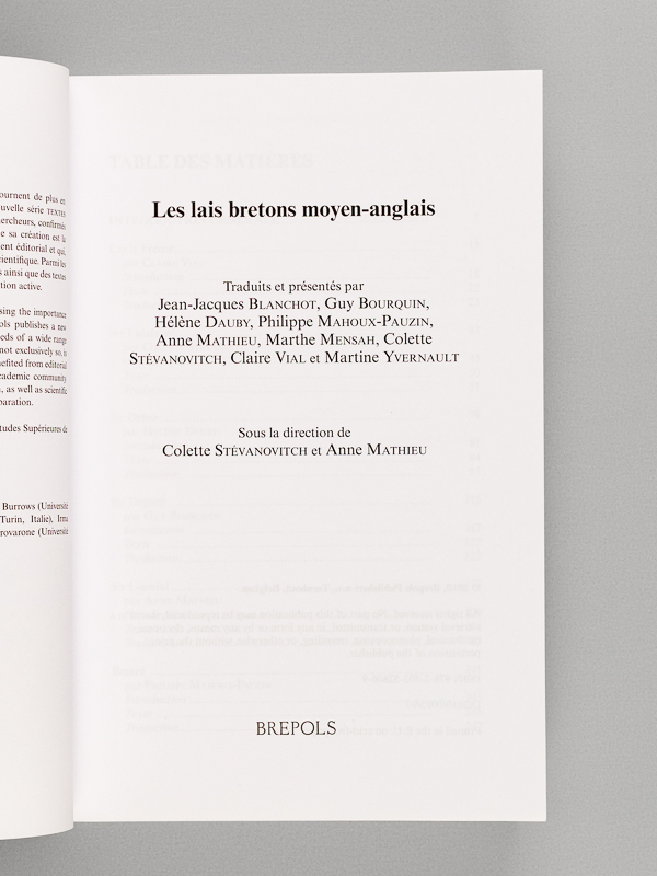 Sous la direction de Colette Stévanovitch et Anne Mathieu, 1 vol. in-8 br., coll. Textes vernaculaires du Moyen Age, Brepols, vol. 9, 2010, 503 pp. Commentaire : Pour la première fois, les neuf lais bretons moyen-anglais connus sont réunis en un volume, avec le texte original et la traduction française en regard. Chaucer avait déjà donné sa version d'un lai breton, 'le Conte du Franklin', dans ses 'Contes de Canterbury'. Bon état.