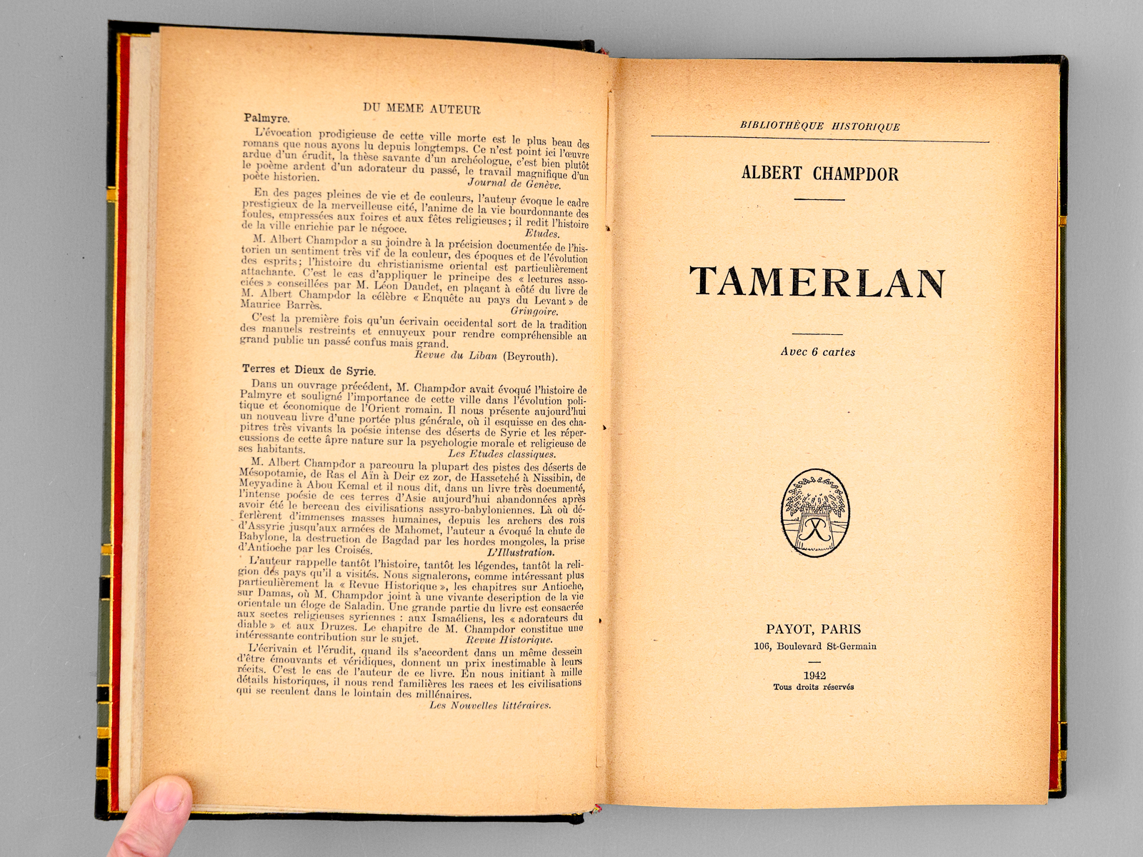 1 vol. in-8 cartonnage bradel richement orné, couverture conservée, Payot, Paris, s.d. [ 1942 ], 246 pp.