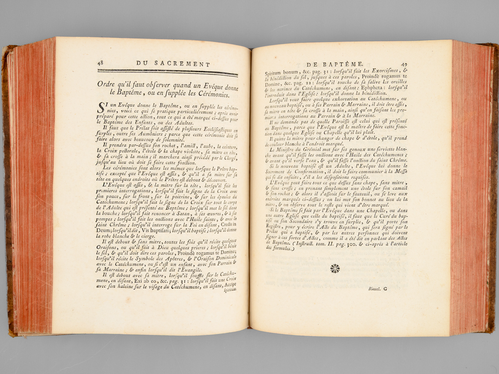 Commentaire : Le volume contient le tome 3 seul des 'Instructions sur le Rituel', mais est bien complet du 'Rituel Romain, pour l'usage du Diocèse de Toulon'. Etat satisfaisant (tome III seul des 'Instructions', reliure un peu frottée avec usures en dos, coiffes et coupes). Brunet, III, 561