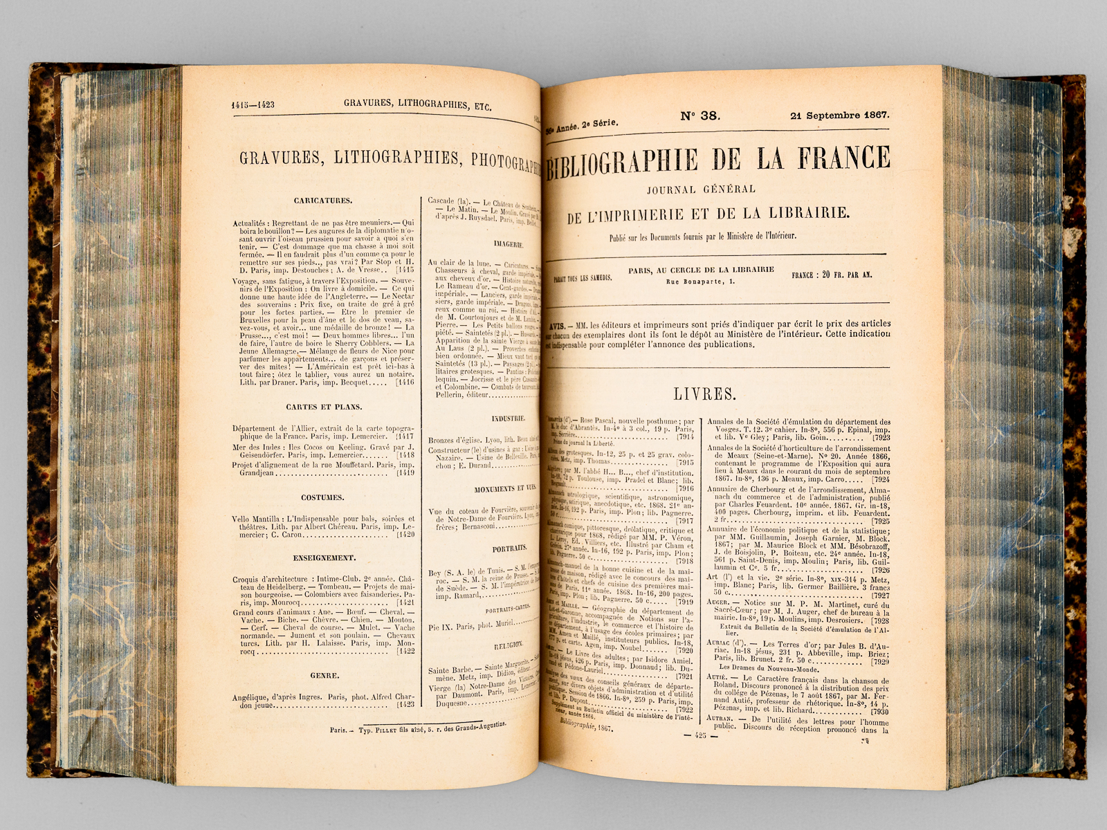Journal Général de l'Imprimerie et de la Librairie , Deuxième Série. Tome XI. Année 1867 (3 parties en 2 vol., complet) : Première Partie Bibliographie ; Deuxième Partie, Chronique : Troisième Partie