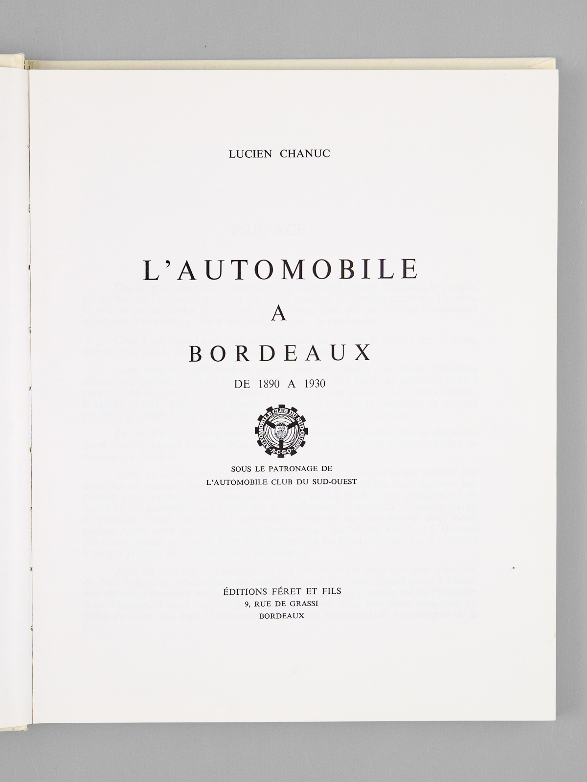 1 vol. in-4 rel. cartonnage éditeur, couv. ill. couleurs, nombreuses photos noir et blanc, Editions Féret et fils, Bordeaux, 1979, 199 pp. Commentaire : Ouvrage passionnant, publié sous le patronage de l'Automobile club du Sud-Ouest. Peu courant dans un aussi bon état.