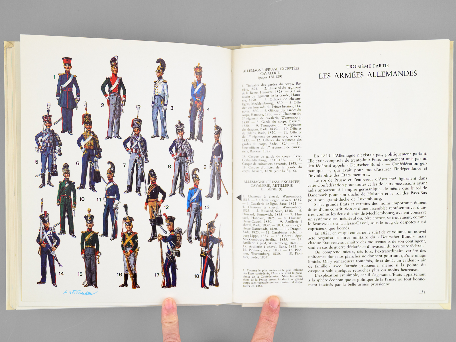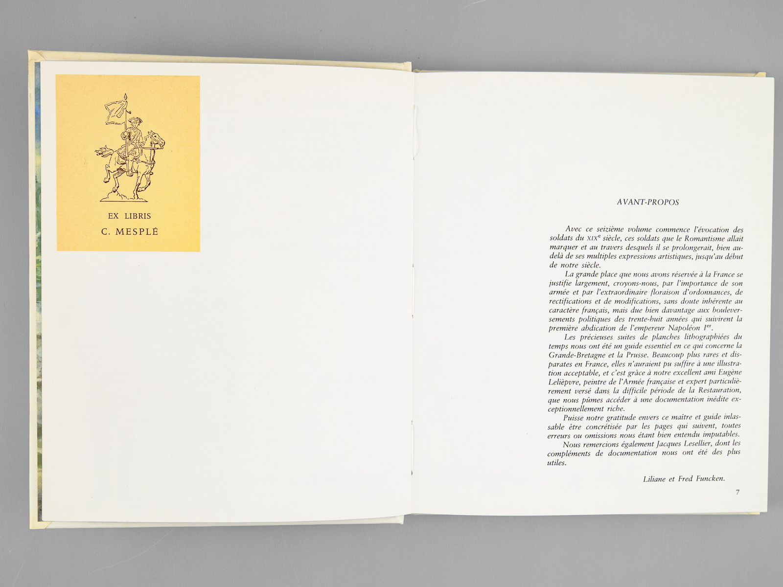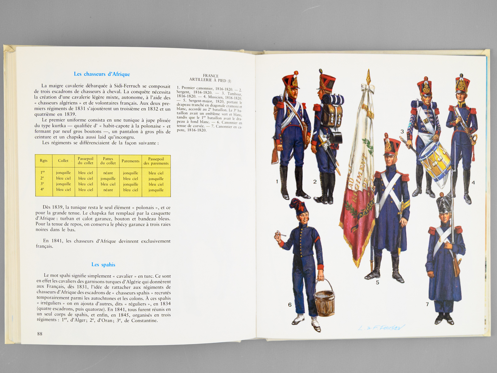 2 vol. in-4 cartonnage éditeur illustré, Casterman, Tournai, 1981 et 19826, 156 ; 156 pp. Rappel du titre complet : L'Uniforme et les Armes des Soldats du XIXe siècle (2 Tomes - Complet) Tome I : 1814-1850 : France, Grande-Bretagne, Allemagne. L'infanterie, la cavalerie, le génie et l'artillerie ; 1850-1900 : France, Grande-Bretagne, Allemagne. L'infanterie, la cavalerie, le génie et l'artillerie Commentaire : Bon état (étiquette d'ex-libris en verso du feuillet de titre, bon exemplaire par ailleurs).