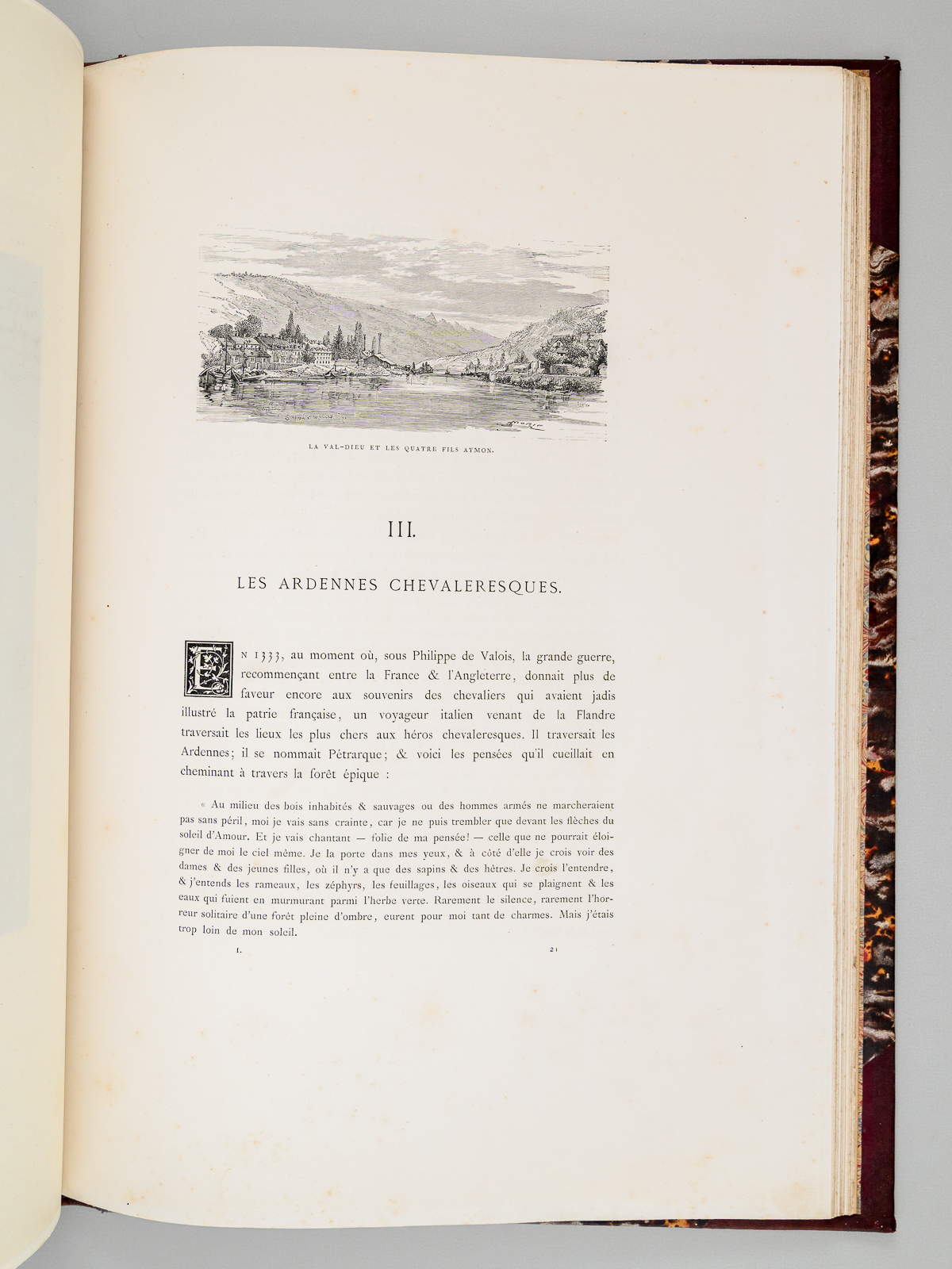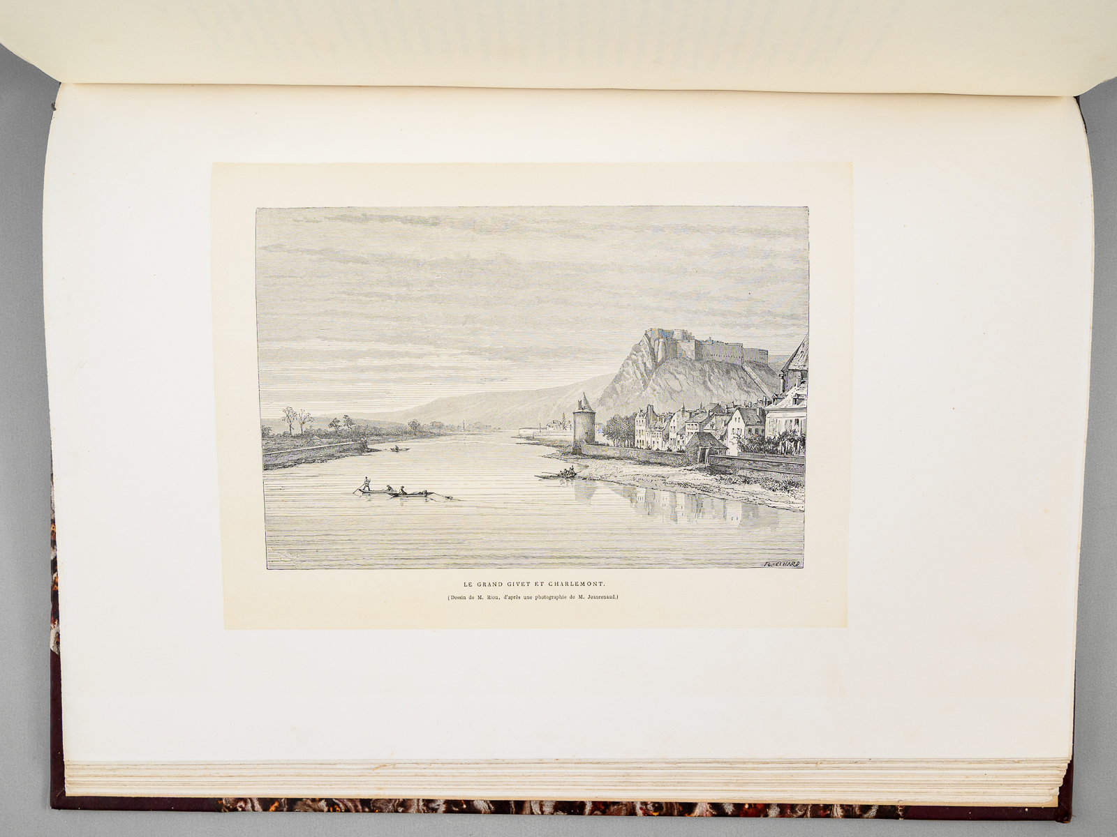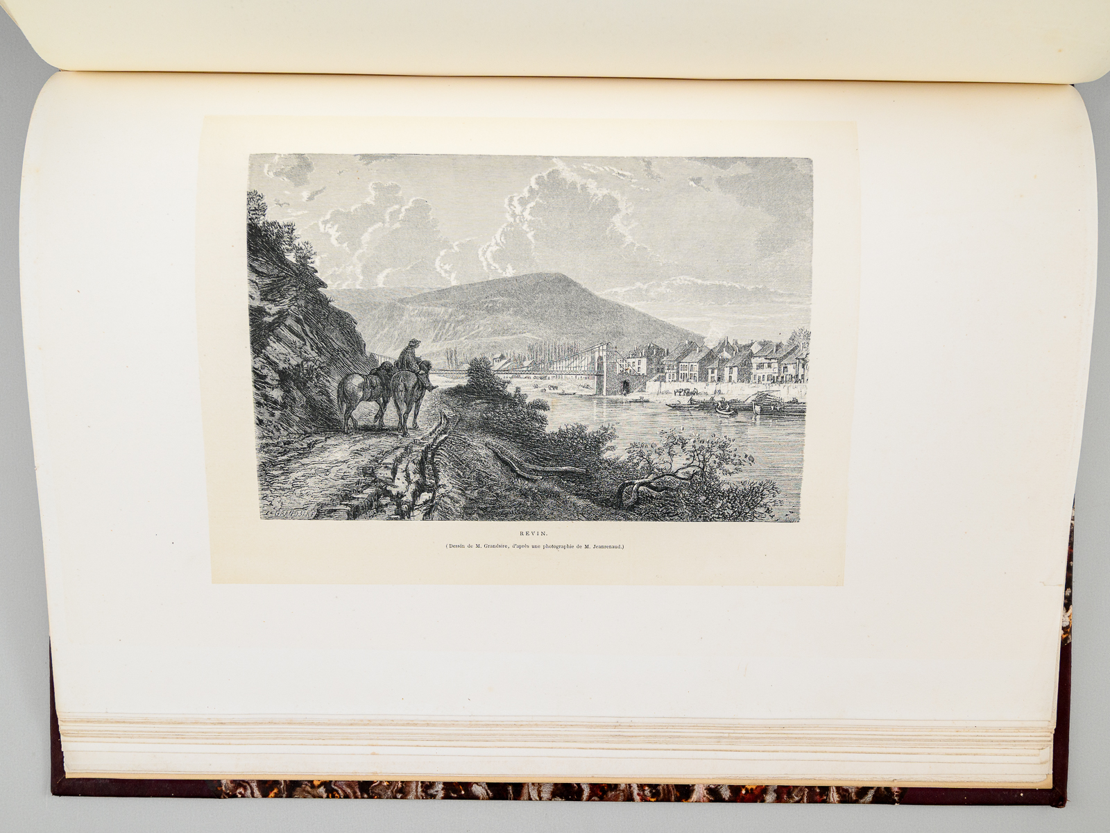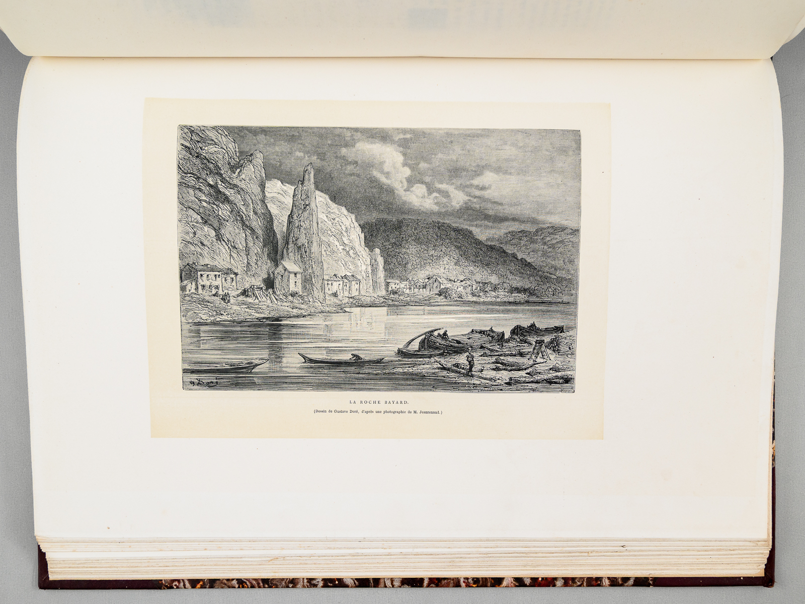 Commentaire : Ce tome premier seul est bien complet de la gravure de Gustave Doré. Leblanc, 255 : 'le seul dessin de Doré, tiré en hors texte sur fond teinté Chine, se trouve page 81 du tome I. Il a pour légende : 'Le Rocher Bayard' (dessin de Gustave Doré d'après un dessin de M. Jeanrenaud). Bon état (tome 1 seul, reliure lég. frottée, qq. rouss. dans le texte, les gravures sont généralement de très belle fraîcheur).