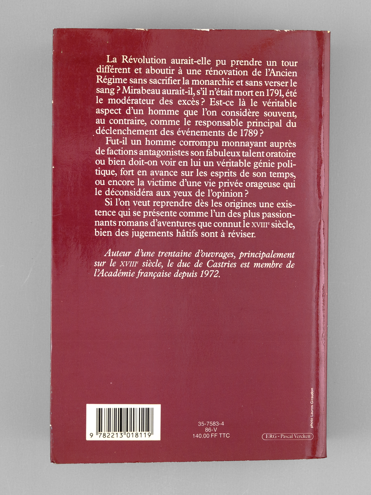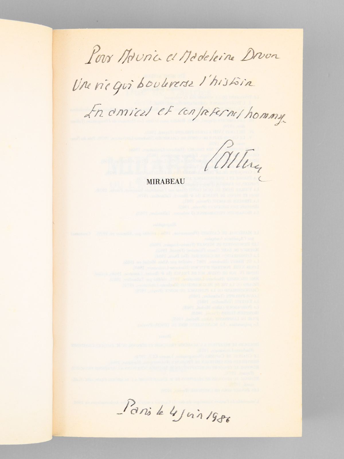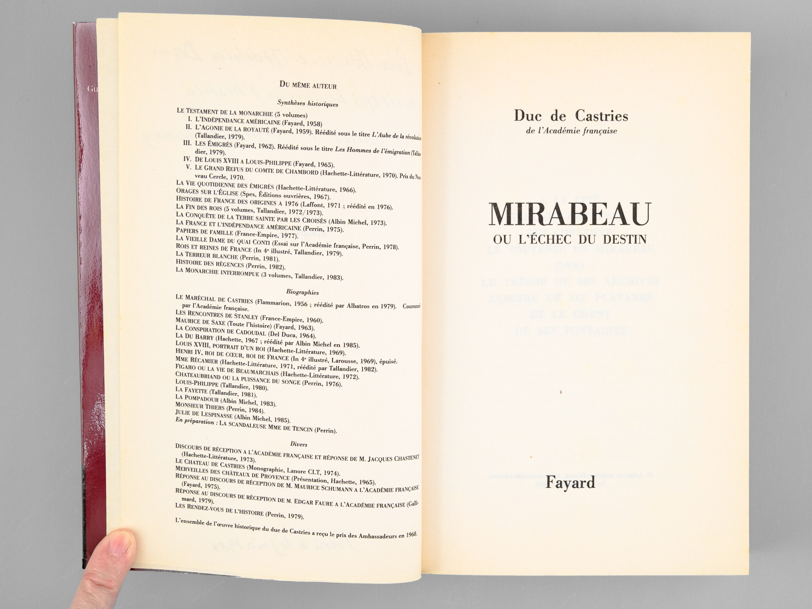 Mirabeau ou l'échec du destin [ Livre signé par l'auteur - Envoi à Maurice Druon ] - Auteur: Duc de Castries [ de La Croix de Castries, René (1908-1986) ] - Année d'édition: 1986
