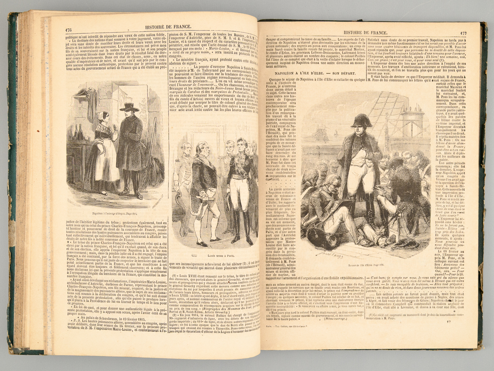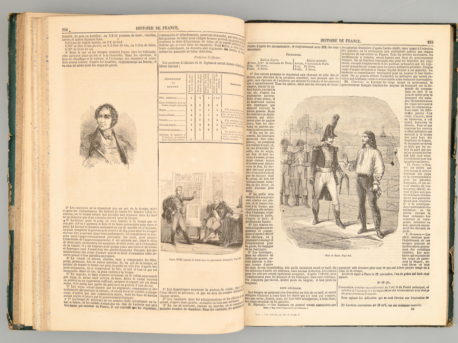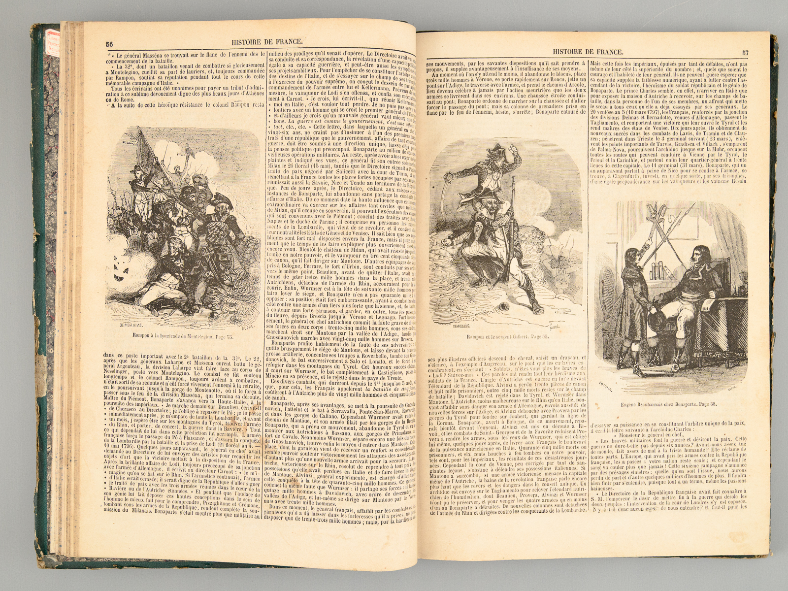 Edition illustrée de 180 gravures par Tony Johannot, Philippoteaux, Janet-Lange, Célestin Nanteuil, Coppin, publiée par Gabriel Roux, 1 vol. in-4 reliure de l'époque demi-basane verte, Lécrivain et Toubon, Successeurs de J. de Riberolles, s.d. [ circa 1849-1850 ],452 pp. Commentaire : Neveu du général Jacques Thomas Sarrut (1765-1813), Germain Sarrut (1800-1883) siègera à l'extrême-gauche de l'Assemblée constituante durant la Seconde République. Etat satisfaisant (coupes fort. frottés, rouss., ancien cachet de société savante, petit accroc à un feuillet) pour ce tirage peu commun. Prix en l'état.