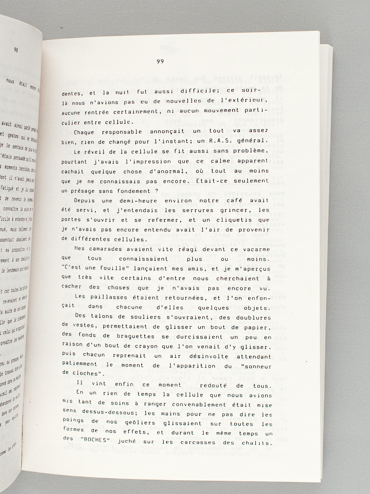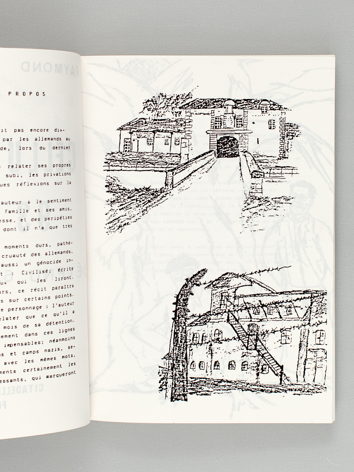 1 vol. in-8 br., s.n., s.d. (1988), 224 pp. Commentaire : Envoi de l'auteur. Bon état pour ce livre que l'auteur mit plus de 50 ans avant de pouvoir écrire. A l'âge de 16 ans, Raymond Bois fut capturé en mai 1943 à Saint-Jean-Pied-de-Port alors qu'il tentait de passer en Espagne. Après avoir été torturé, il fut envoyé à Buchenwald. Là-bas, laissé pour mort dans un charnier du camp, il ne survécut que d'extrême justesse à la libération du camp de concentration. Après la guerre, et jusqu'à sa mort en 2014, il résida à Nogaro (Gers), où il exercera la profession de photographe (Ses archives photographiques ont partiellement été numérisées par les archives du Gers).