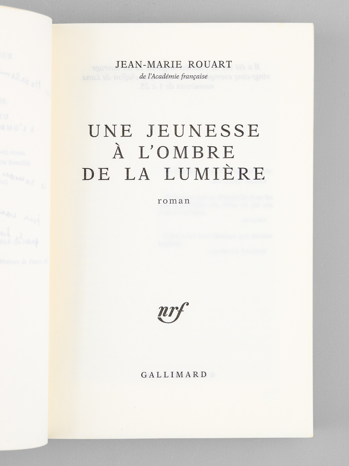 1 vol. in-8 br., NRF, Gallimard, Paris, 2000, 368 pp.