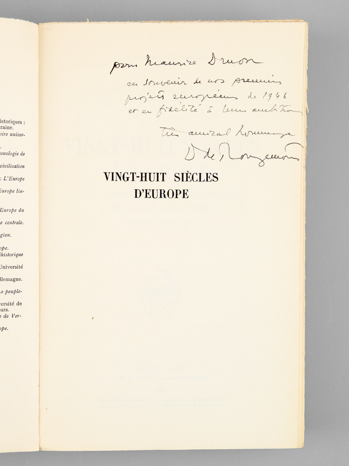 Vingt-Huit Siècles d'Europe. La conscience européenne à travers les textes d'Hésiode à nos jours [ Livre dédicacé par l'auteur à Maurice Druon ] Une jeunesse à l'ombre de la lumière [ Livre dédicacé par l'auteur à Maurice Druon ]