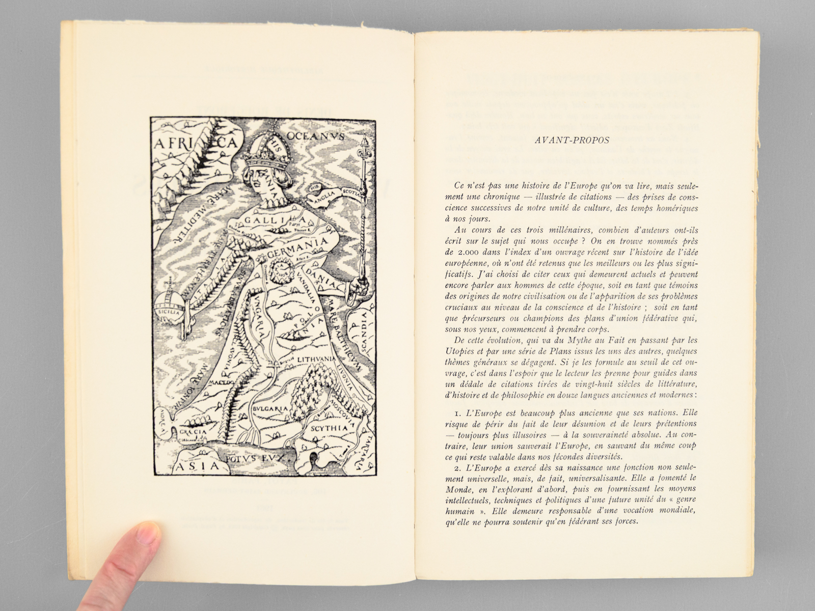 Commentaire : Très bel envoi de Denis de Rougemont : 'Pour Maurice Druon, en souvenir de nos premiers projets européens de 1946 et en fidélité à leurs ambitions. Très amical hommage'. Bon état pour cet exemplaire de superbe provenance : de la bibliothèque du grand écrivain Maurice Druon, Secrétaire Perpétuel de l'Académie Française de 1985 à 1999. Conformément à son habitude, Maurice Druon a signalé à l'encre 2 passages ayant particulièrement retenu son attention.