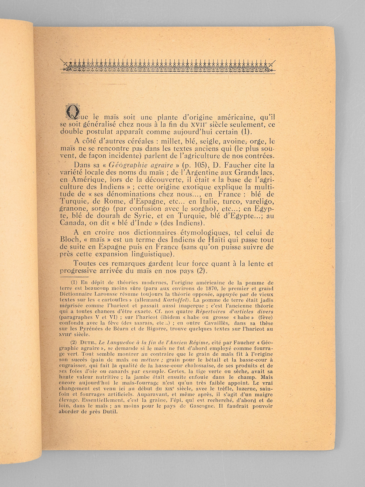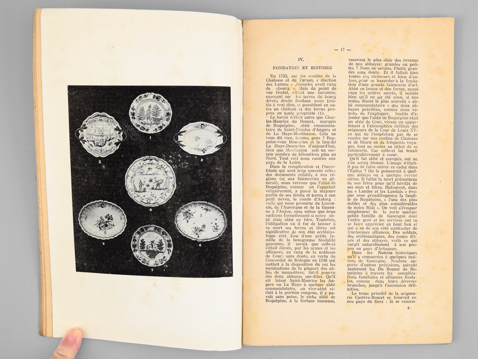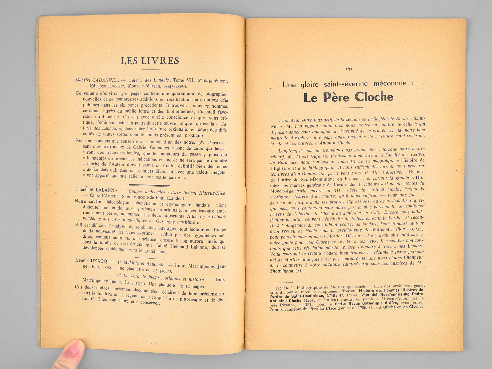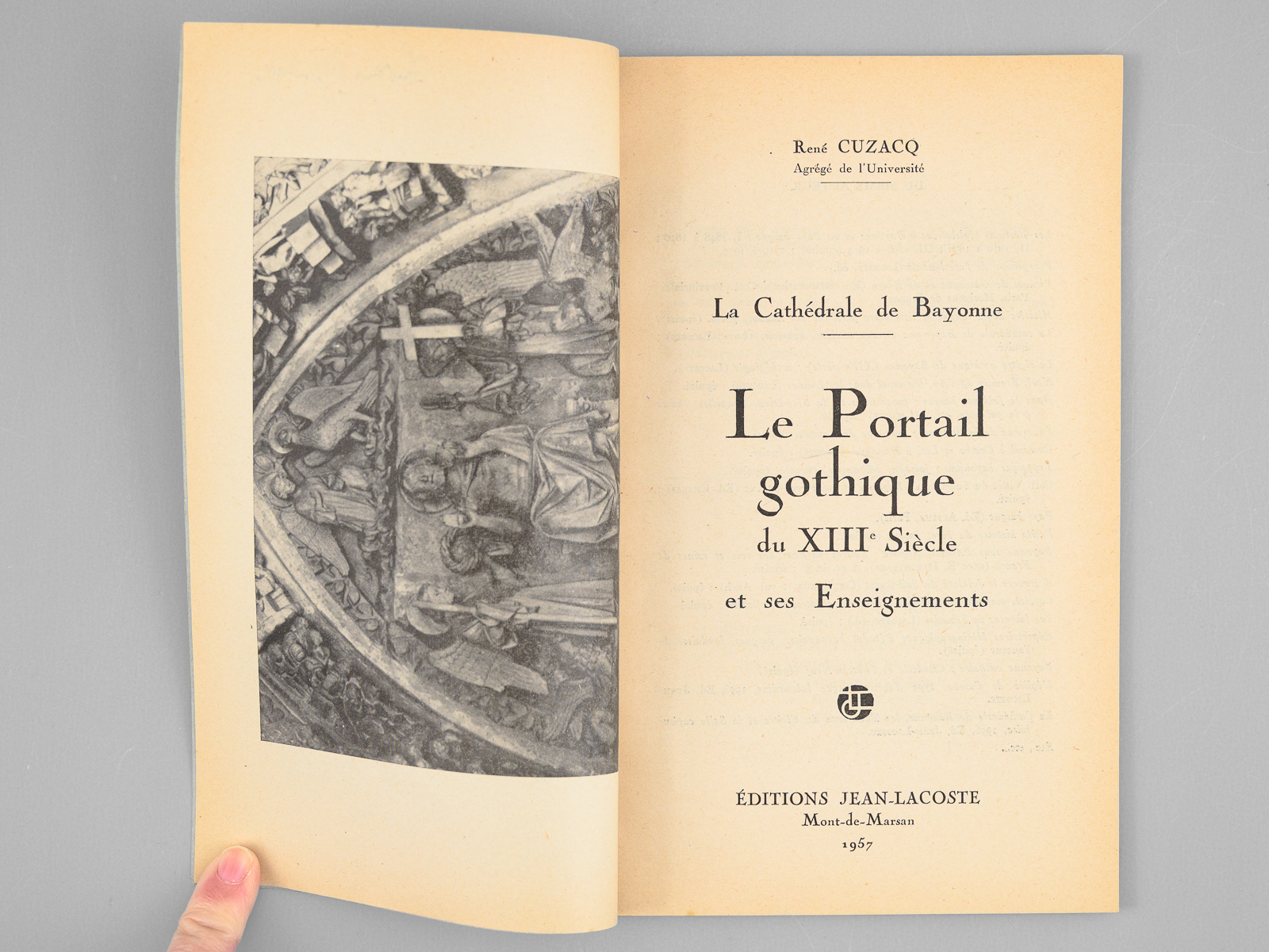 6 brochures in-12 et in-, Les faïences de Samadet, Editions Jean Lacoste, 1940, 73 pp. [ On joint : ] Origines de la Culture du Maïs en Gascogne, Imprimerie F. Cocharaux, Auch, 1952, 38 pp. [ On joint : ] Le Père Cloche (1628-1720) Une Gloire Saint-Séverine méconnue, tiré-à-part de la Société de Borda [ On joint : ] Ausone,Dax et les pays aquitains. Les origines dacquoises du rhéteur Arborius, Editions Jean Lacoste, 1960 [ On joint : ] Troisième Répertoire bibliographique d'études bayonnaises, basques, landaises et d'articles divers, Chez l'Auteur, Bayonne, 1942, 37 pp. [ On joint : ] La Cathédrale de Bayonne. Le portail gothique du XIIIe Siècle et ses Enseignements, Editions Jean Lacoste, 1957, 67 pp.