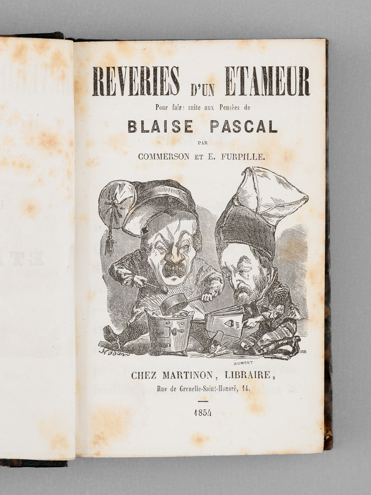 [ Recueil de 3 titres : ] Rêveries d'un Etameur pour faire suite aux Pensées de Blaise Pascal,par Commerson & E. Furpille [ Suivi de : ] Mayonnaise d'Ephémérides et de Dictionnaire assaisonnée par Joseph Citrouillard et r - Auteur: COMMERSON ; CITROUILLARD, Joseph ; [ COMMERSON, Jean-Louis-Auguste ] - Année d'édition: 1854