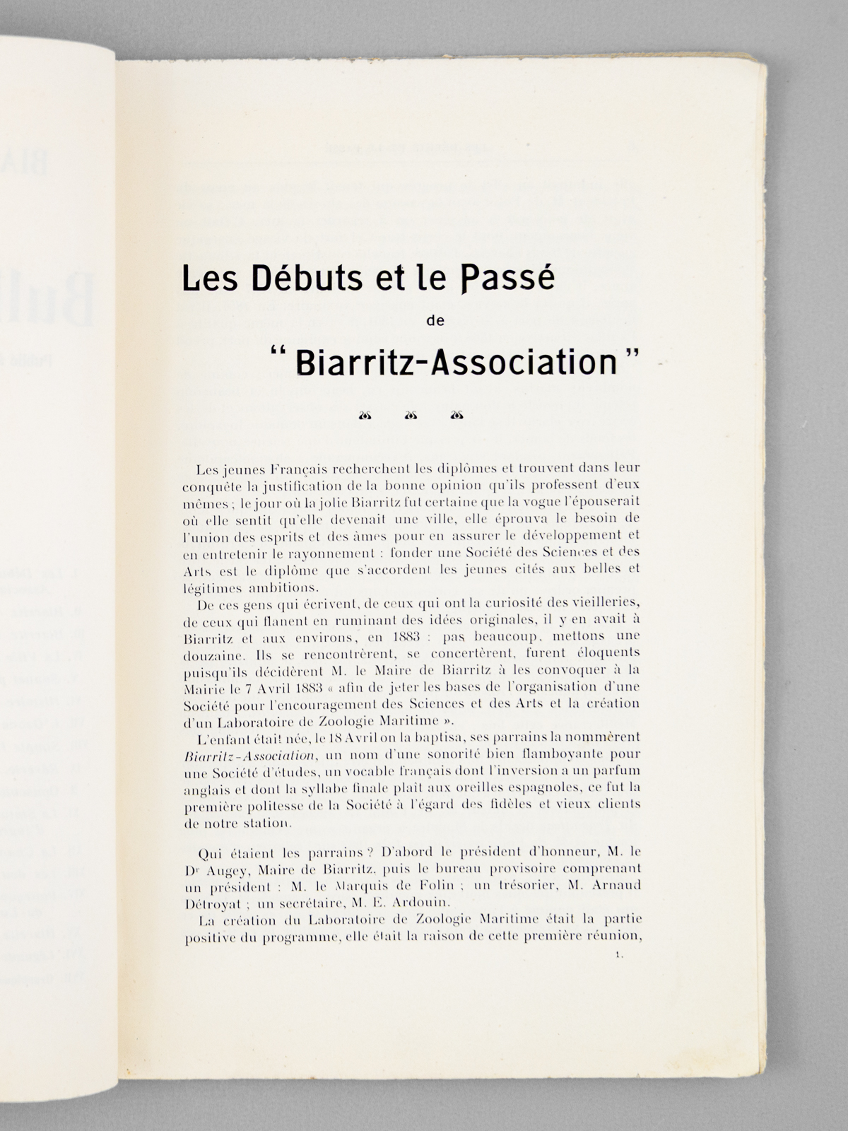 Biarritz-Association. Bulletin Spécial Publié à l'occasion du 25e Anniversaire de la Société [ Edition originale ][ Contient : ] I. Les Débuts et le Passé de Biarritz-Association ; II. Biarritz Autrefois et