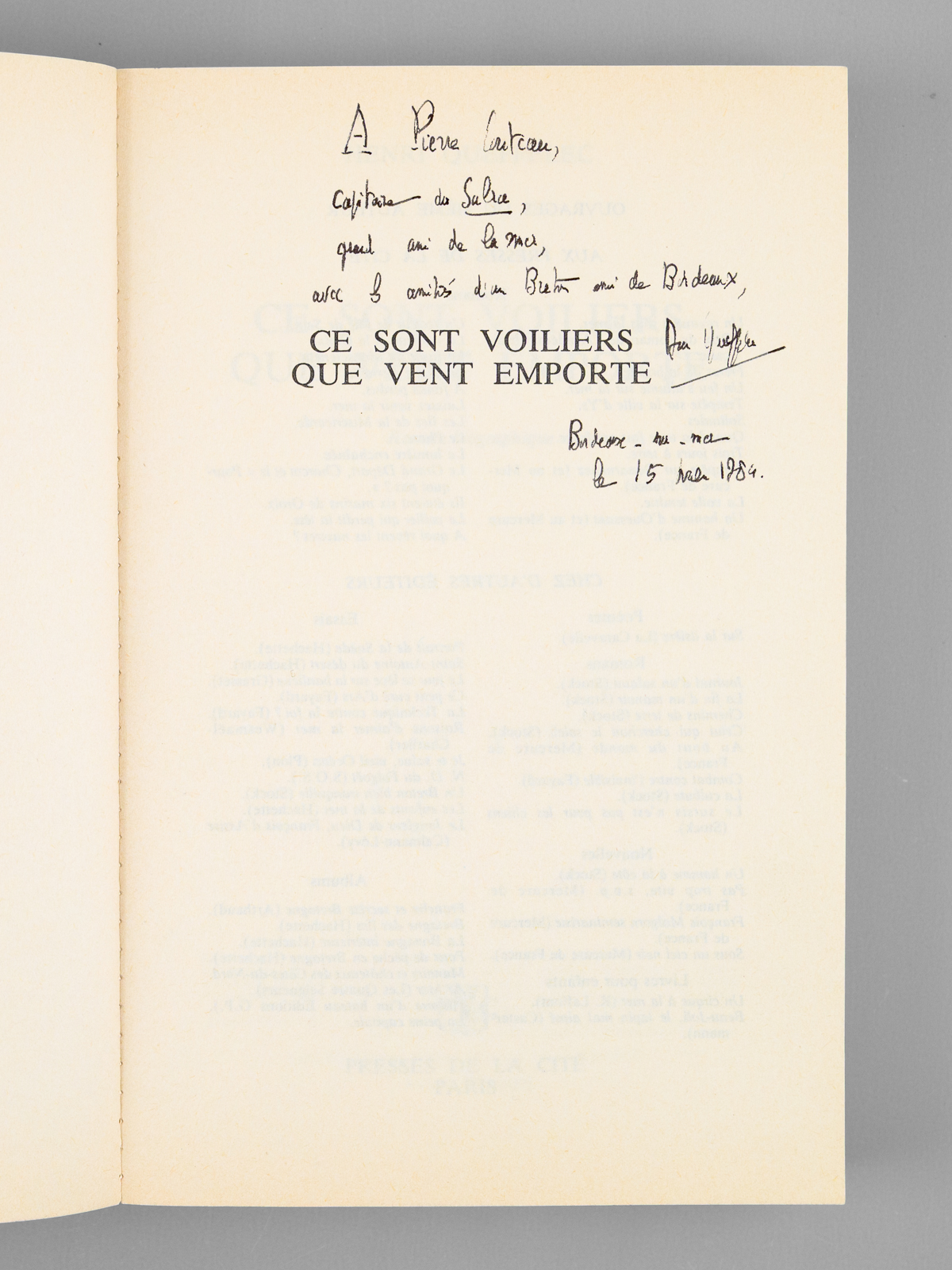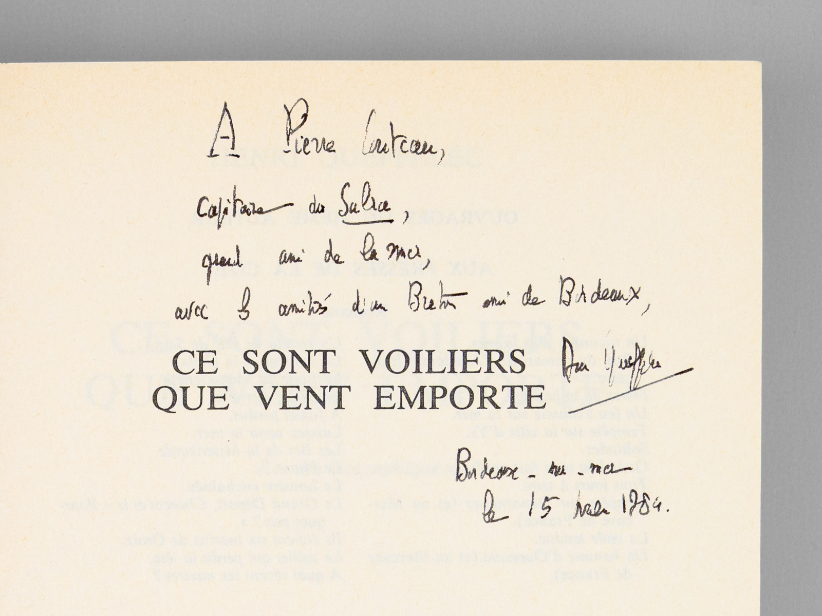 Ce sont voiliers que vent emporte [ Livre dédicacé par l'auteur ]