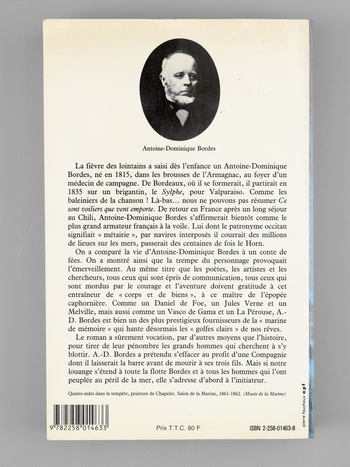 1 vol. in-8 br., Presses de la Cité, Paris, 1984, 349 pp. Commentaire : Bel envoi d'Henri Quéffelec. Ce 'roman biographique' évoque la vie d'Antoine-Dominique Bordes, le plus grand armateur à la voile de son temps. Bon exemplaire