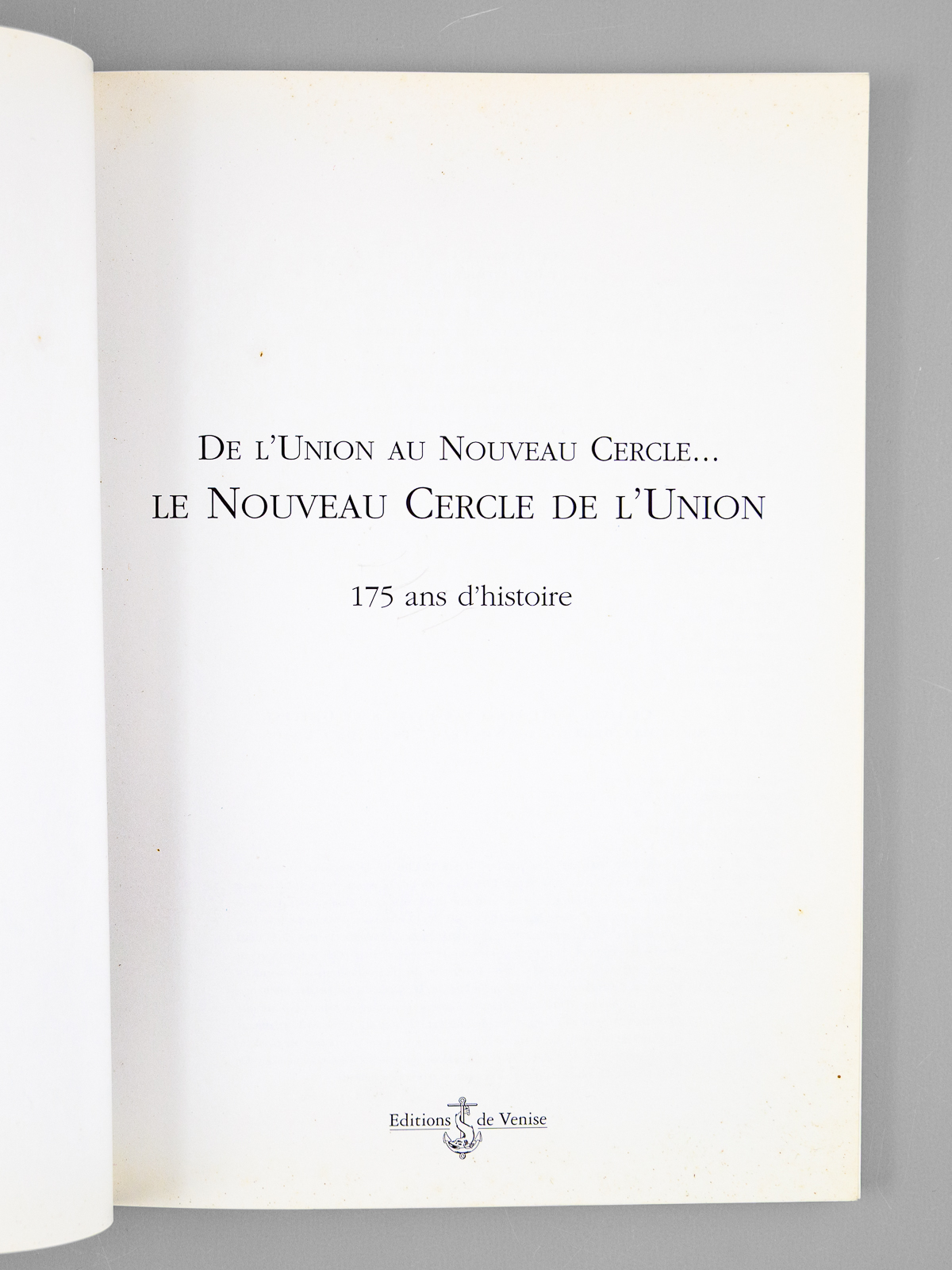 De l'Union au Nouveau Cercle... Le Nouveau Cercle de l'Union. 175 ans d'Histoire