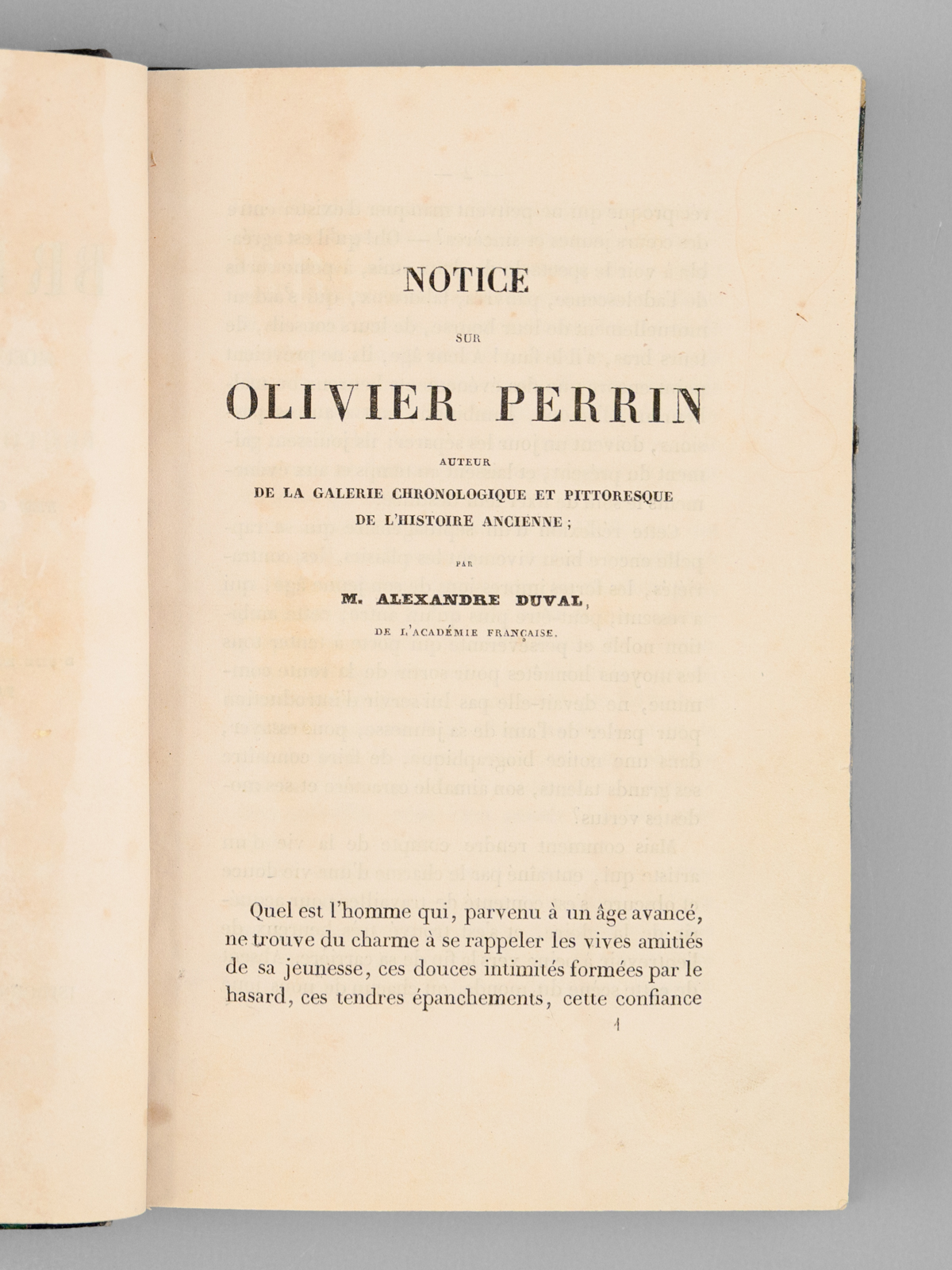 Par Feu O. Perrin du Finistère, gravée sur acier par Réveil, avec texte explicatif par MM. Perrin fils et Ale. Bouet ; précédé d'une notice sur la vie de l'auteur, par M. Alexandre Duval, de l'Académie Française, 1 vol. petit in-8 reliure demi-basane noire, Isidore Pesron, Paris, 1835, 1 f., 192 pp. avec 40 planches hors texte sous serpente Commentaire : Ce volume est le premier d'une série de 3, les deux autres volumes étant parus en 1836 et 1838. Bon état (reliure un peu frottée, des rouss.)