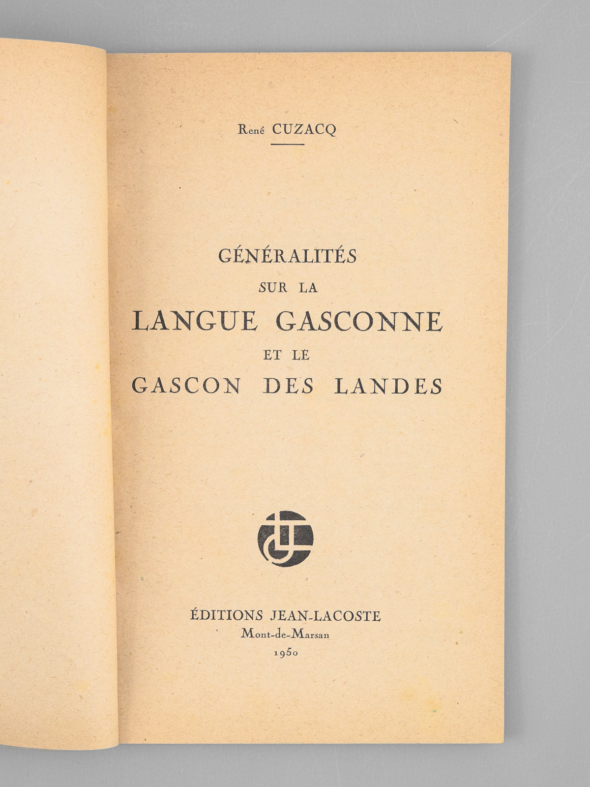 Généralités sur la langue gasconne et le gascon des Landes [ Edition originale - Livre dédicacé par l'auteur ]