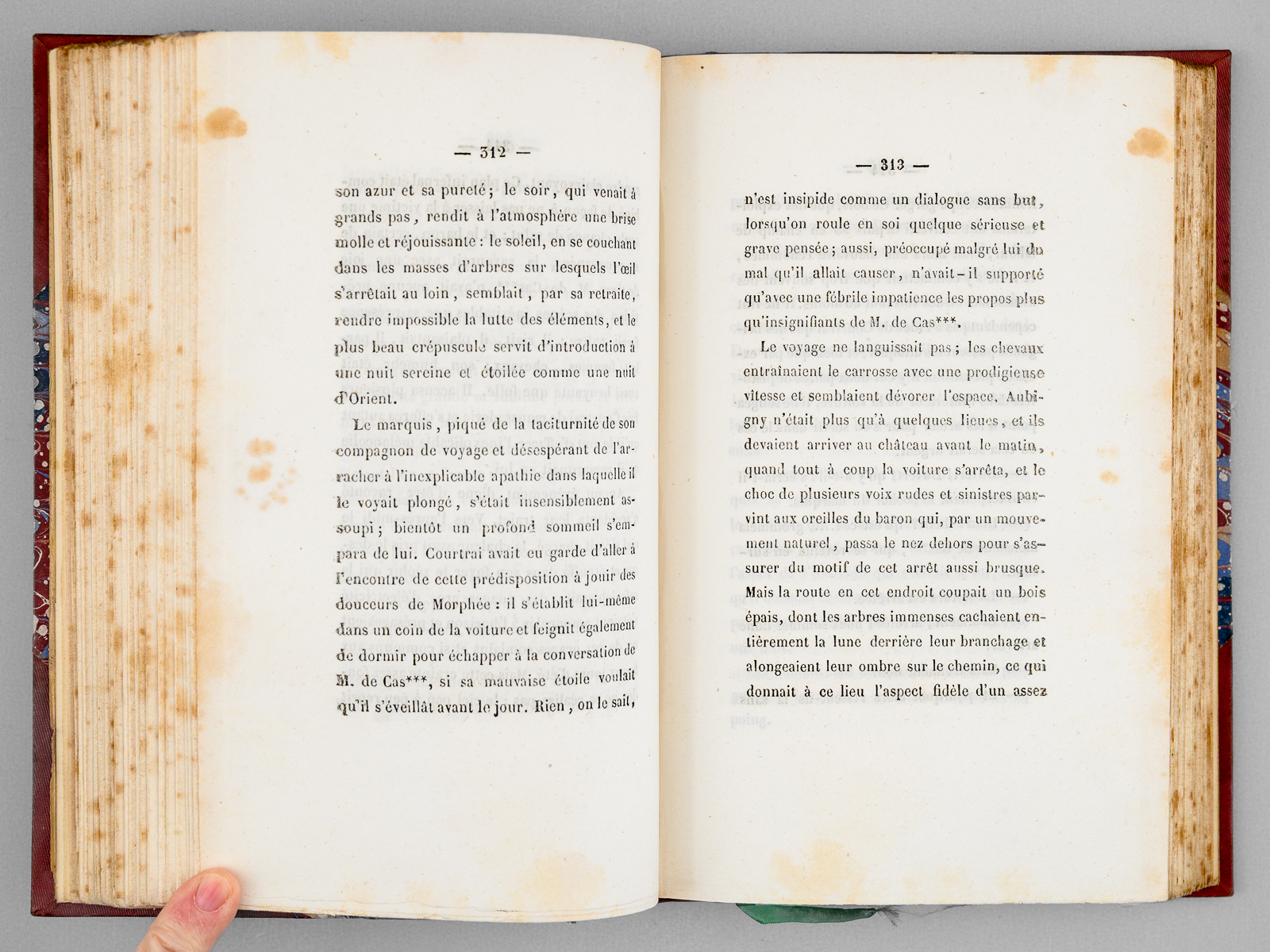 1 vol. in-8 reliure de l'époque bradel demi-percaline à coins brune, tête dorée, Publication de Charles Le Clere, édit.-libr., À la Librairie spéciale pour les cabinets de lecture, Paris, 1844, 1 f., 371 pp., 1 f., 329 pp. et 1 f. n. ch.