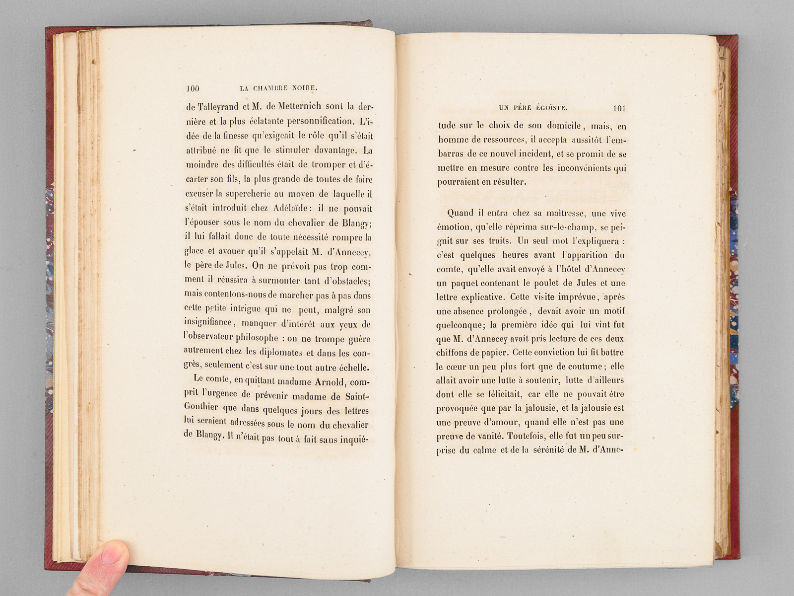 1 vol. in-8 reliure de l'époque bradel demi-percaline à coins brune, tête dorée, Publication de Charles Le Clere, édit.-libr., Librairie des cabinets de lecture, Paris, 1843, 1 f., 371 pp., 1 f., 329 pp. et 1 f. n. ch.