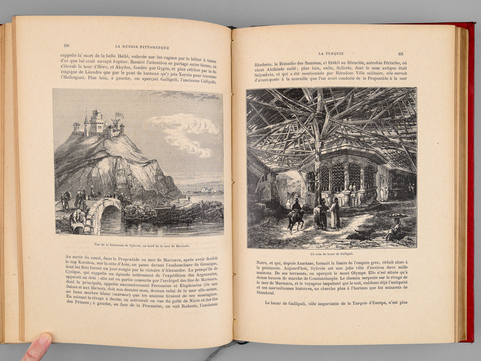 Commentaire : Bel exemplaire de cet ouvrage consacré non seulement à la description de la Russie ainsi que l'indique son titre (pp. 7 à 158) mais aussi à la Turquie (pp. 159 à 254), puis aux Balkans (pp. 255-322) et enfin à la Grèce (pp. 324-366). Passionnant ouvrage, richement illustré, en très bel état.