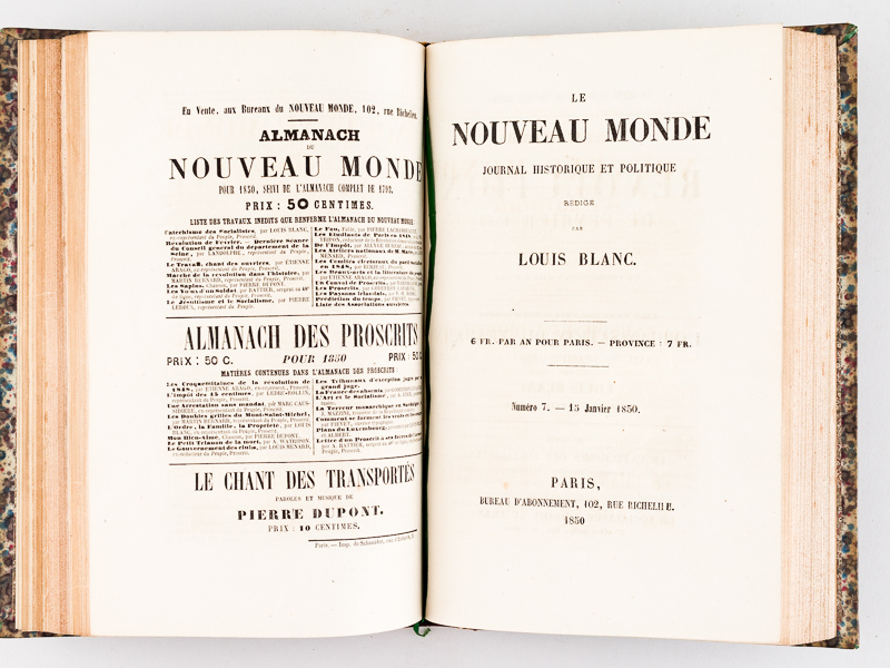 Le Nouveau Monde. Journal Historique et Politique rédigé par Louis Blanc  [ Numéros 1 à 12, 15 juillet 1849 au 15 juin 1850 ]photo n°2 : Le Nouveau Monde. Journal Historique et Politique rédigé par Louis Blanc  [ Numéros 1 à 12, 15 juillet 1849 au 15 juin 1850 ]photo n°3 : Le Nouveau Monde. Journal Historique et Politique rédigé par Louis Blanc  [ Numéros 1 à 12, 15 juillet 1849 au 15 juin 1850 ]photo n°4 : Le Nouveau Monde. Journal Historique et Politique rédigé par Louis Blanc  [ Numéros 1 à 12, 15 juillet 1849 au 15 juin 1850 ]photo n°5 : Le Nouveau Monde. Journal Historique et Politique rédigé par Louis Blanc  [ Numéros 1 à 12, 15 juillet 1849 au 15 juin 1850 ]photo n°6 : Le Nouveau Monde. Journal Historique et Politique rédigé par Louis Blanc  [ Numéros 1 à 12, 15 juillet 1849 au 15 juin 1850 ]photo n°7 : Le Nouveau Monde. Journal Historique et Politique rédigé par Louis Blanc  [ Numéros 1 à 12, 15 juillet 1849 au 15 juin 1850 ]photo n°8 : Le Nouveau Monde. Journal Historique et Politique rédigé par Louis Blanc  [ Numéros 1 à 12, 15 juillet 1849 au 15 juin 1850 ]photo n°9 : Le Nouveau Monde. Journal Historique et Politique rédigé par Louis Blanc  [ Numéros 1 à 12, 15 juillet 1849 au 15 juin 1850 ]photo n°10 : Le Nouveau Monde. Journal Historique et Politique rédigé par Louis Blanc  [ Numéros 1 à 12, 15 juillet 1849 au 15 juin 1850 ]photo n°11 : Le Nouveau Monde. Journal Historique et Politique rédigé par Louis Blanc  [ Numéros 1 à 12, 15 juillet 1849 au 15 juin 1850 ]photo n°12 : Le Nouveau Monde. Journal Historique et Politique rédigé par Louis Blanc  [ Numéros 1 à 12, 15 juillet 1849 au 15 juin 1850 ]photo n°13 : Le Nouveau Monde. Journal Historique et Politique rédigé par Louis Blanc  [ Numéros 1 à 12, 15 juillet 1849 au 15 juin 1850 ]photo n°14 : Le Nouveau Monde. Journal Historique et Politique rédigé par Louis Blanc  [ Numéros 1 à 12, 15 juillet 1849 au 15 juin 1850 ]photo n°15 : Le Nouveau Monde. Journal Historique et Politique rédigé par Louis Blanc  [ Numéros 1 à 12, 15 juillet 1849 au 15 juin 1850 ]