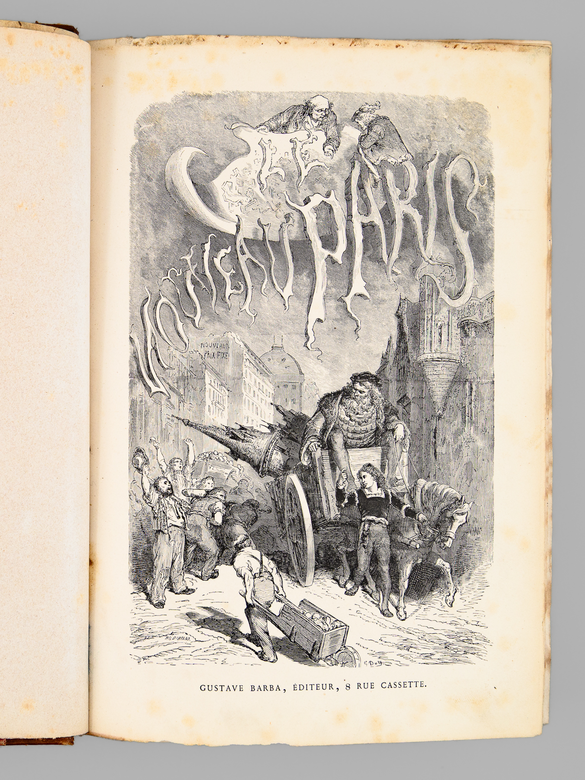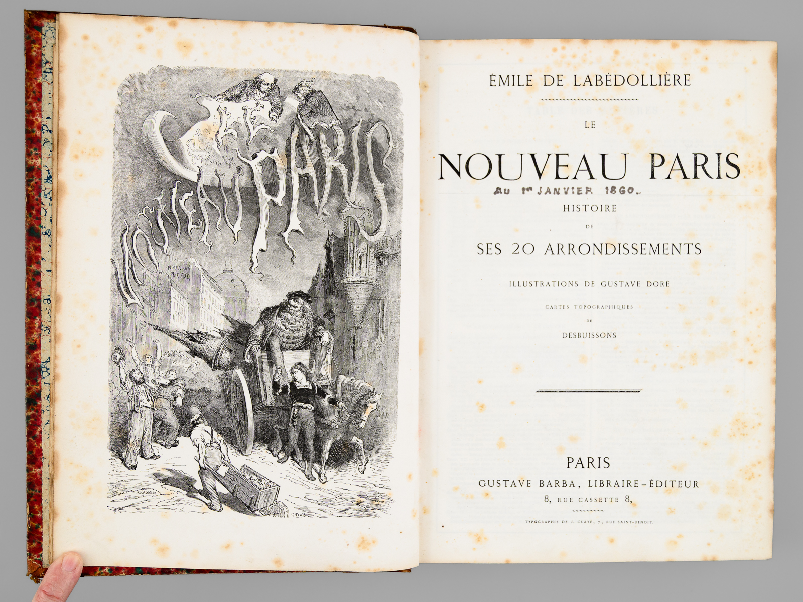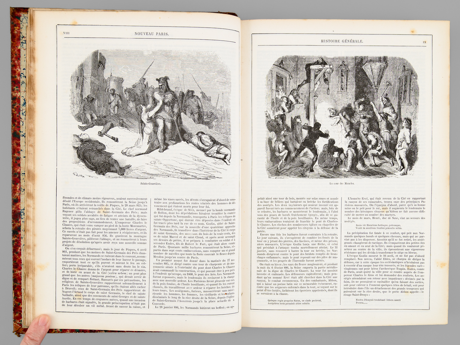 Commentaire : Les nombreuses illustrations de Gustave Doré sont remarquables, et les nombreuses cartes en couleurs sur double page sont superbes. Etat satisfaisant (rel. frottée avec accrocs et mq. en coiffes, coins frottés, mention manuscrite à l'encre en titre, qq. rouss., accroc habituel à la grande carte, bon état par ailleurs) pour cet exemplaire de premier tirage. Prix en l'état. Vicaire, IV, 732 ; Carteret, III, 345 ; Leblanc, Catalogue, 495